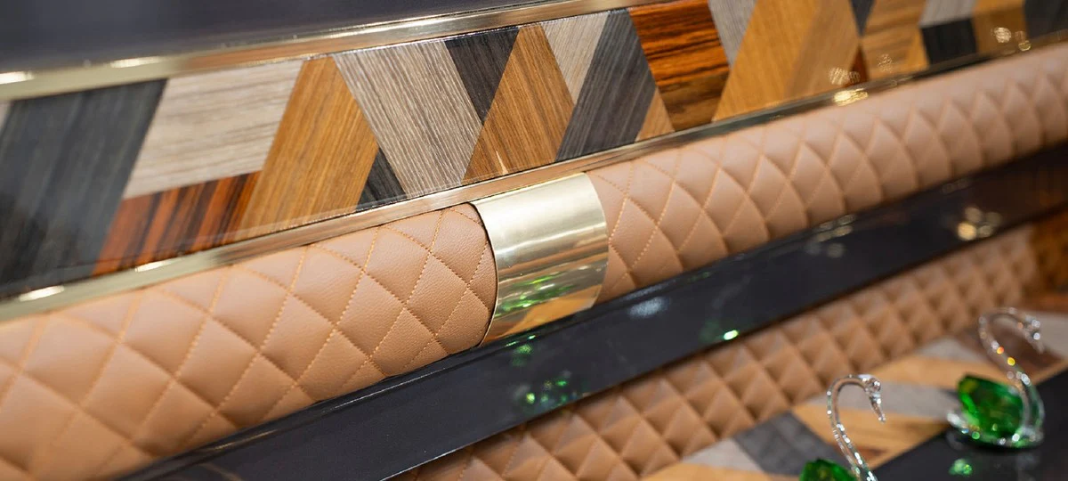 Casa Padrino conjunto de dormitorio de lujo marr¨®n / gris / lat¨®n - 1 C¨®moda con 6 Cajones y 1 Espejo de Pared - Armario de dormitorio con espejo - Muebles de dormitorio - Colecci¨®n de Lujo