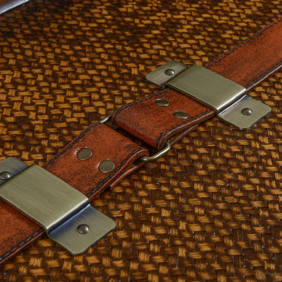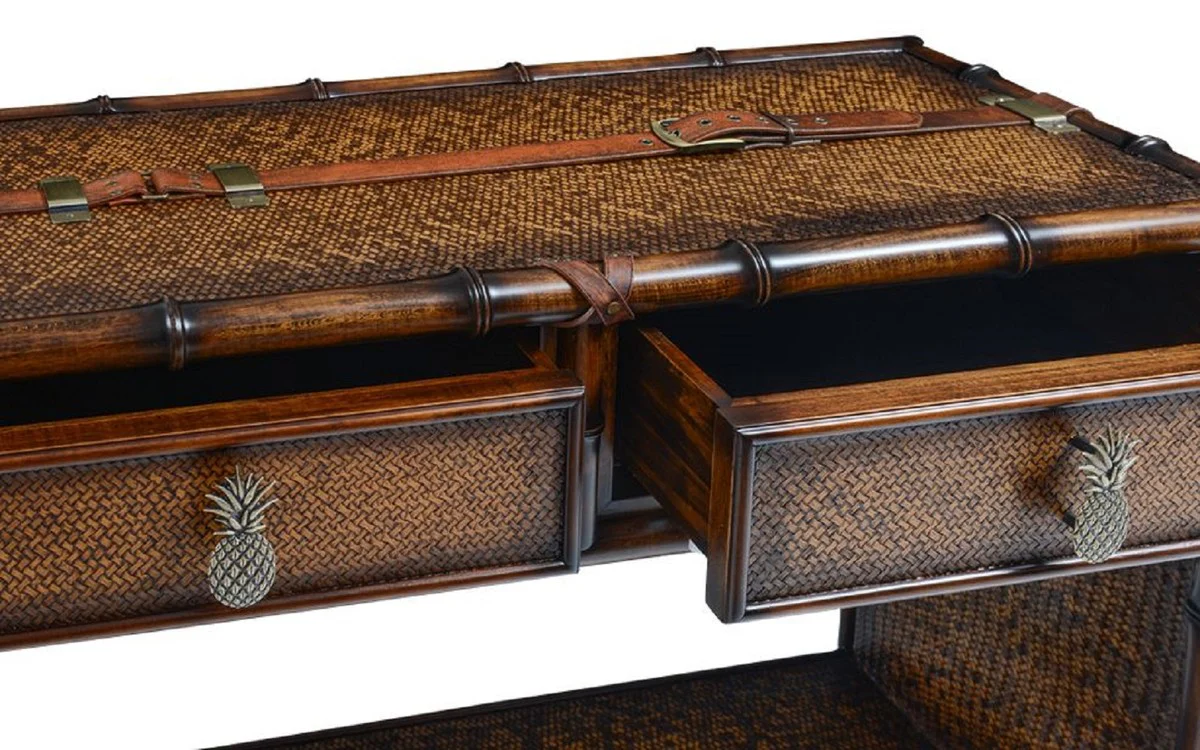 Casa Padrino consola de lujo en ¨®ptica de maleta marr¨®n / negro / lat¨®n 120 x 39 x A. 83 cm - Mesa consola con 3 cajones - Muebles de dormitorio - Muebles de lujo en ¨®ptica de maleta