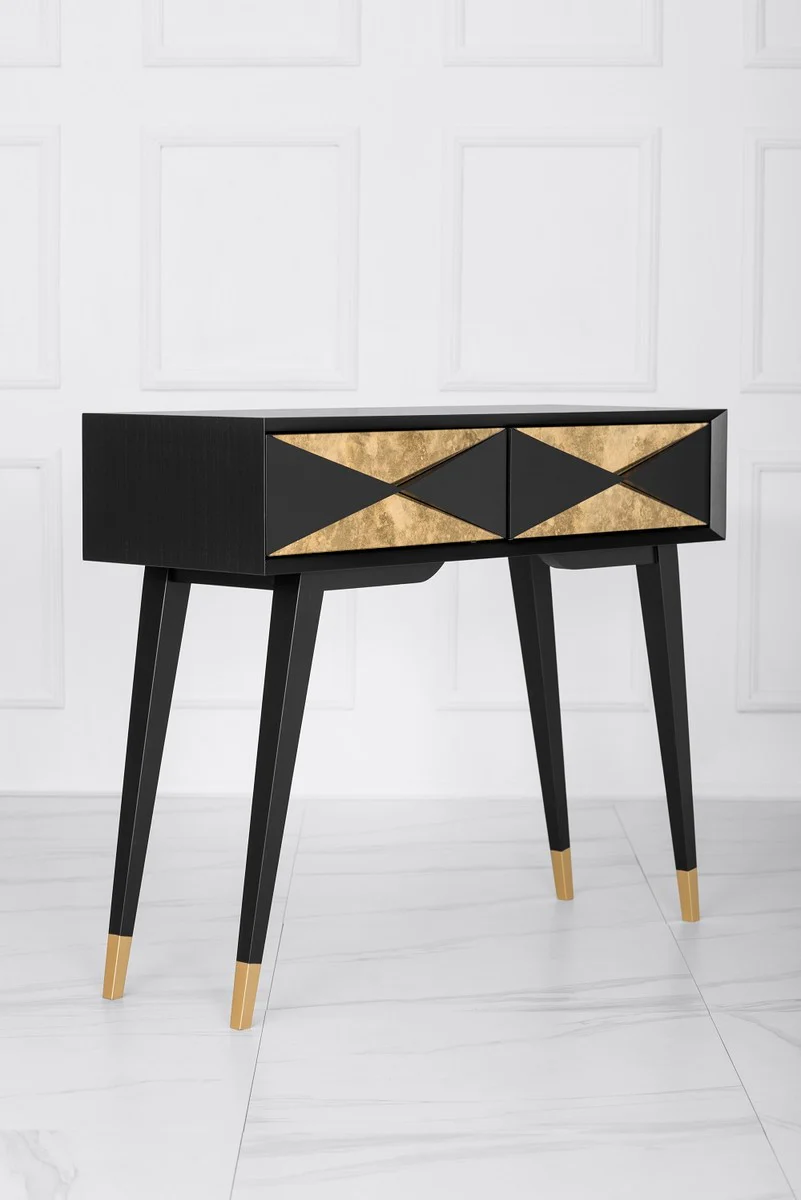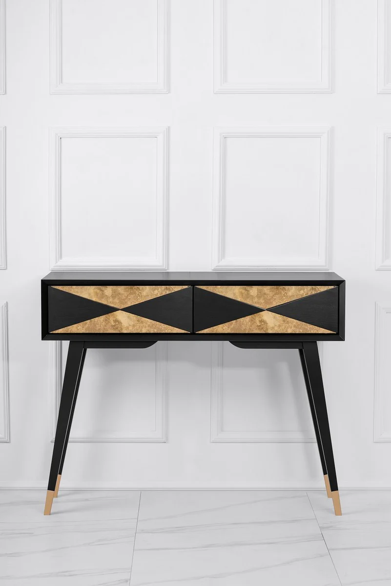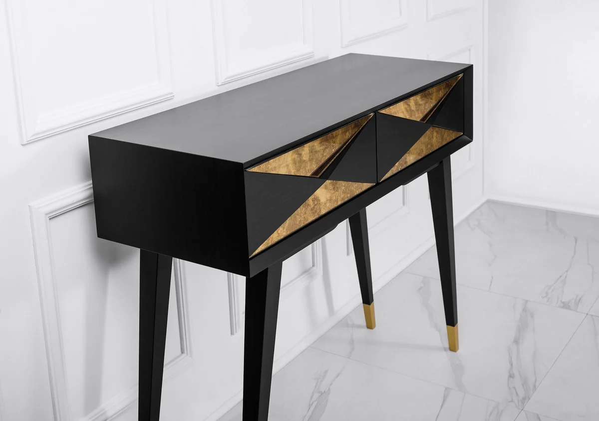 Casa Padrino Consola de Lujo Negro Mate / Oro Antiguo / Oro 100 x 35 x A. 80 cm - Consola de Madera Maciza Espejada y 2 Cajones - Muebles de Lujo - Interiores de Lujo