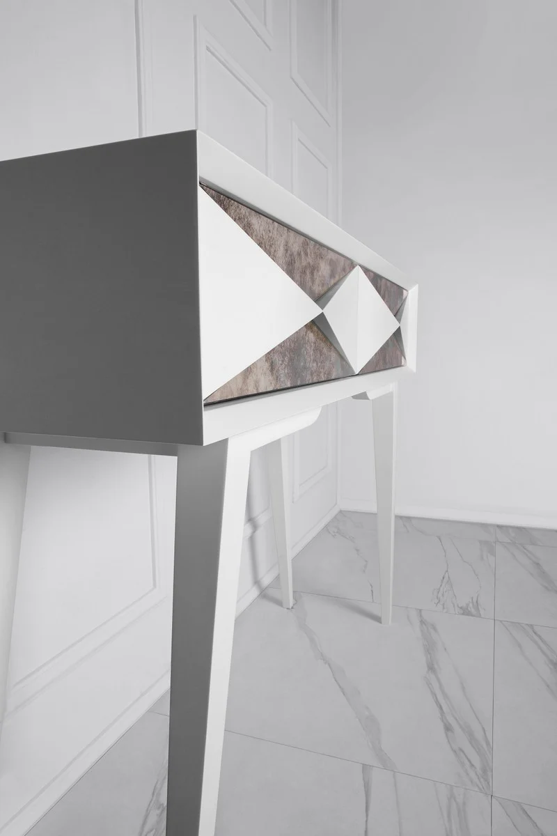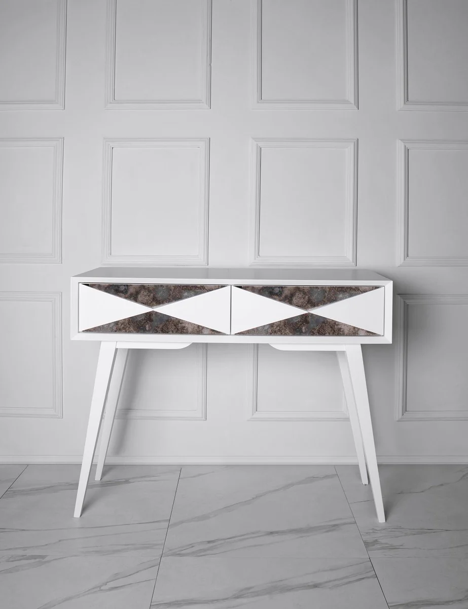 Casa Padrino Consola de Lujo Blanco Mate / Plata Antiguo 100 x 35 x A. 80 cm - Consola de Madera Maciza Espejada y 2 Cajones - Muebles de Lujo - Interiores de Lujo