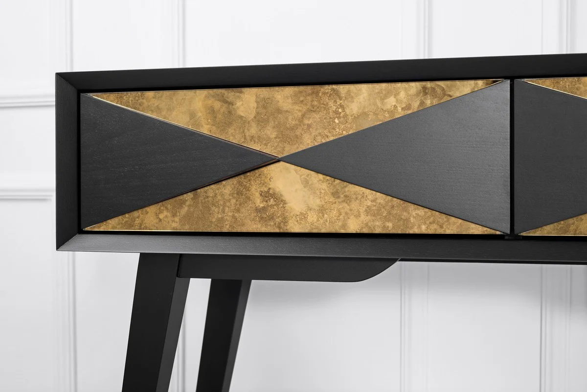 Casa Padrino Consola de Lujo Negro Mate / Co?ac Mate / Oro 148 x 40 x A. 80 cm - Consola de Madera Maciza con 3 Cajones - Muebles de Lujo - Interiores de Lujo