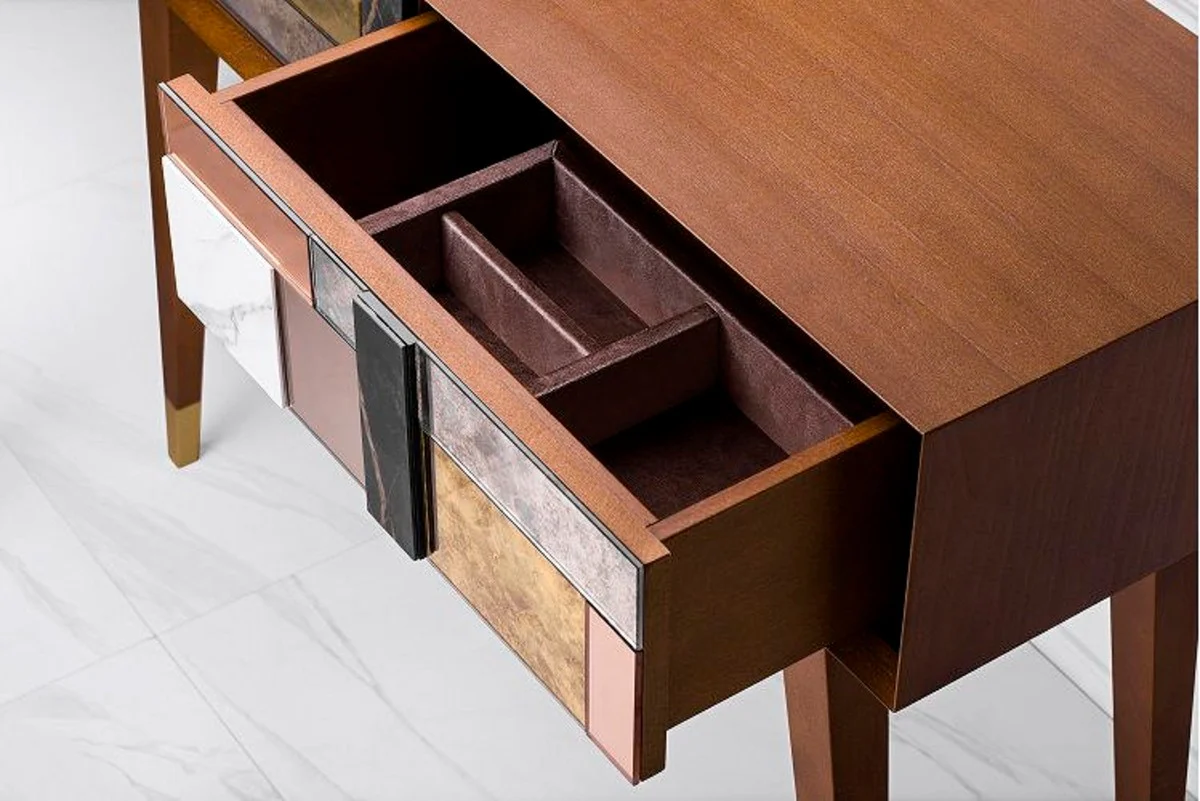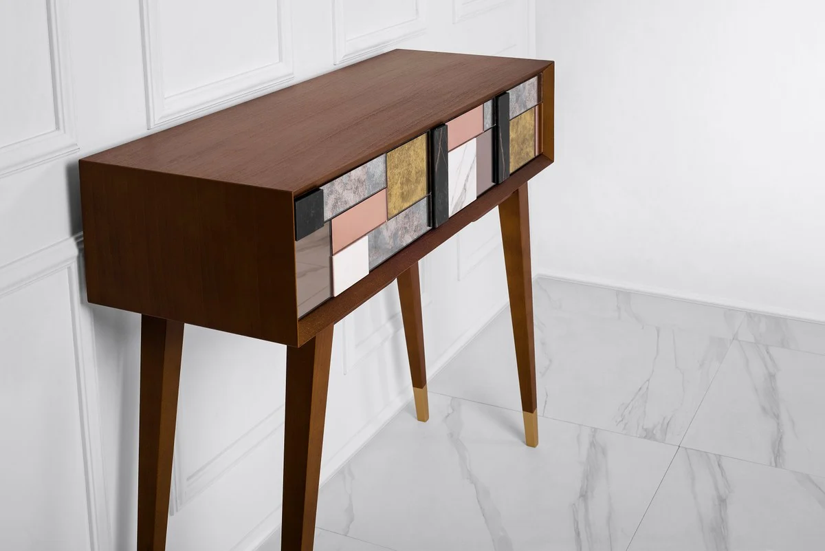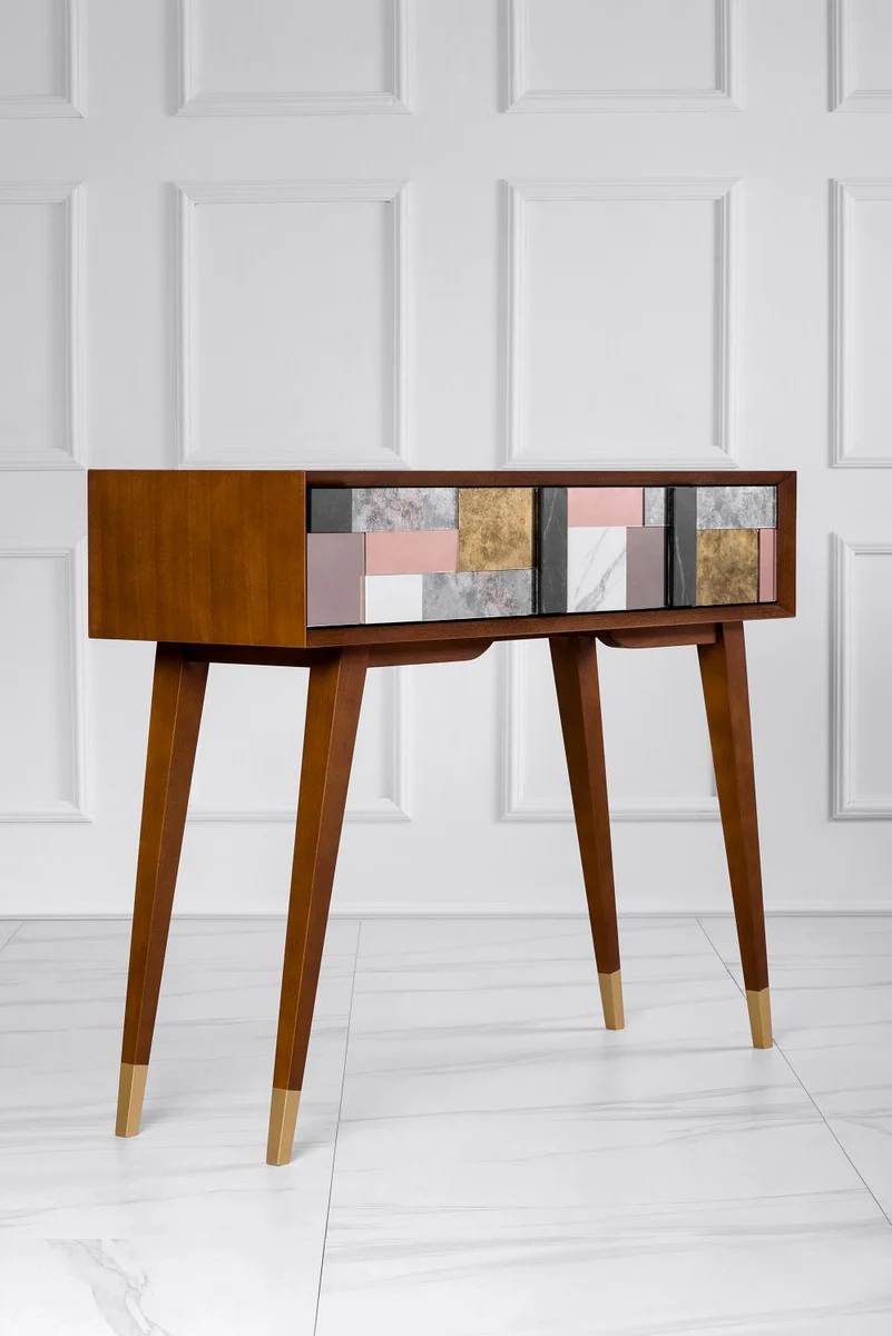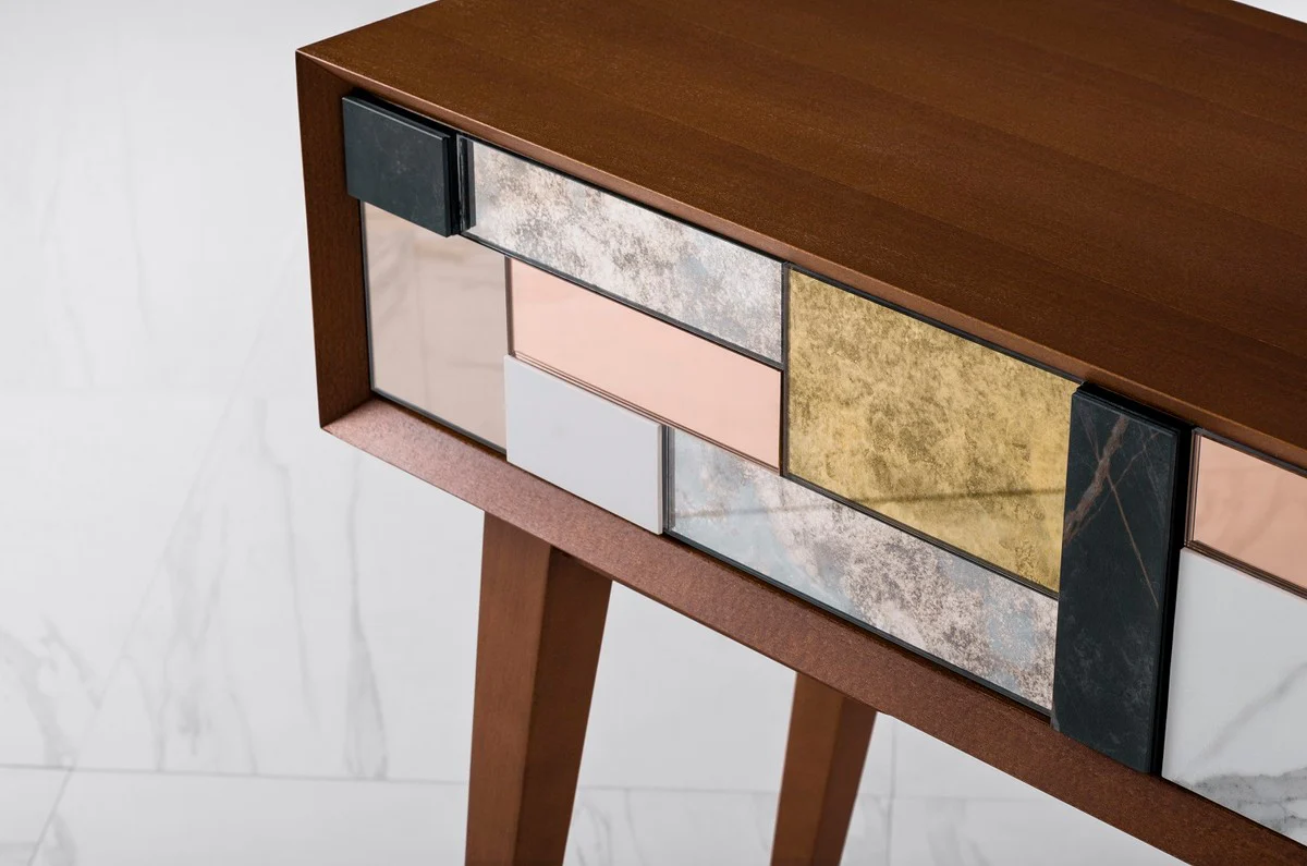 Casa Padrino Consola de Lujo Co?ac Mate / Multicolor / Oro 100 x 35 x A. 80 cm - Consola de Madera Maciza Espejada y 2 Cajones - Muebles de Lujo - Interiores de Lujo
