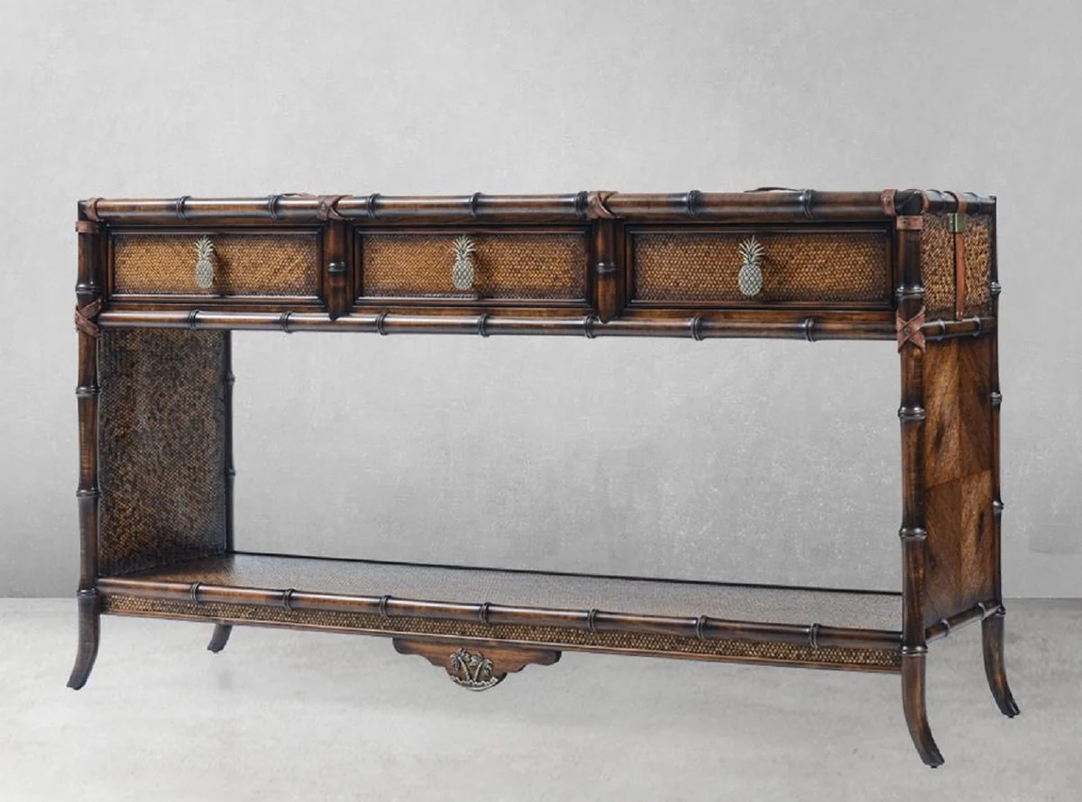 Casa Padrino Consola de Lujo de Estilo Vintage Marr¨®n 184 x 39 x A. 88 cm - Mesa Consola de Madera Maciza con 3 Cajones - Muebles de Madera Maciza - Muebles de Estilo Vintage - Muebles de Lujo