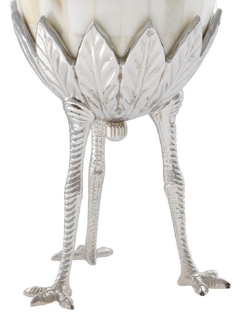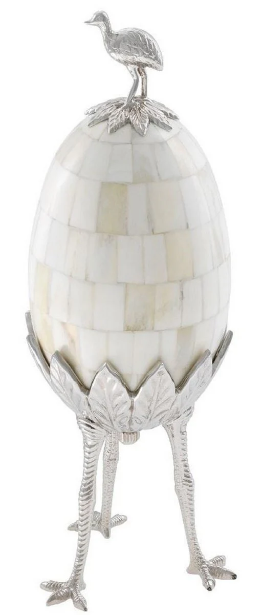 Casa Padrino objeto de decoración de lujo emu huevo natural / plata Ø 12 x H. 33 cm - Accesorios de Decoración de Oficina