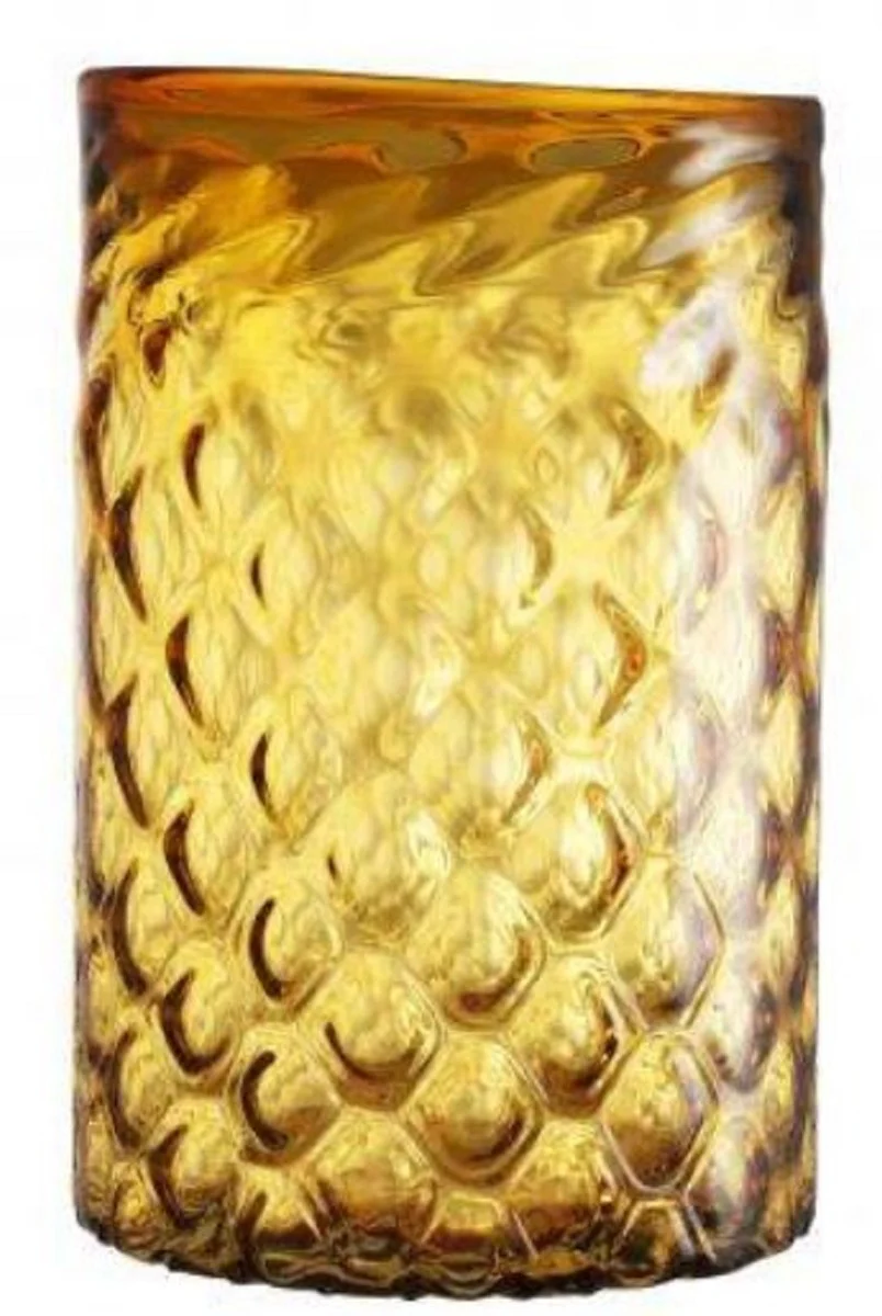 Casa Padrino portavela de vidrio de lujo amarillo Ø 27 x H. 44 cm - Accesorios de Decoración de Hoteles y Restaurantes