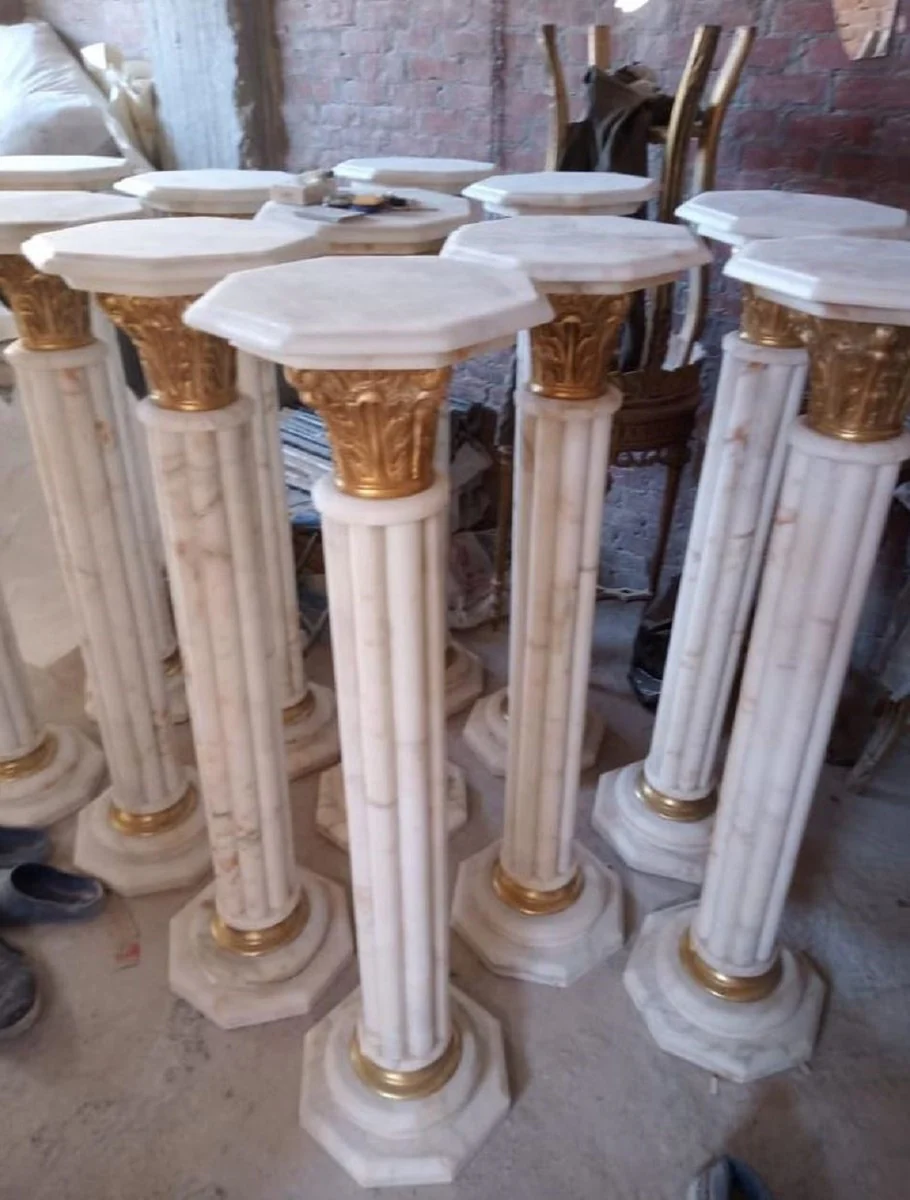 Casa Padrino pilar barroco blanco / oro A. 113 cm - Pilar de mármol magnífico en estilo barroco - Accesorios de decoración barroco