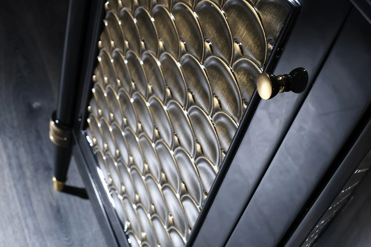 Casa Padrino Conjunto de Ba?o de Lujo Negro / Oro / Blanco - 1 Mesa de Lavado con 4 Puertas y 2 Lavabos y 2 Espejos de Pared - Calidad de Lujo