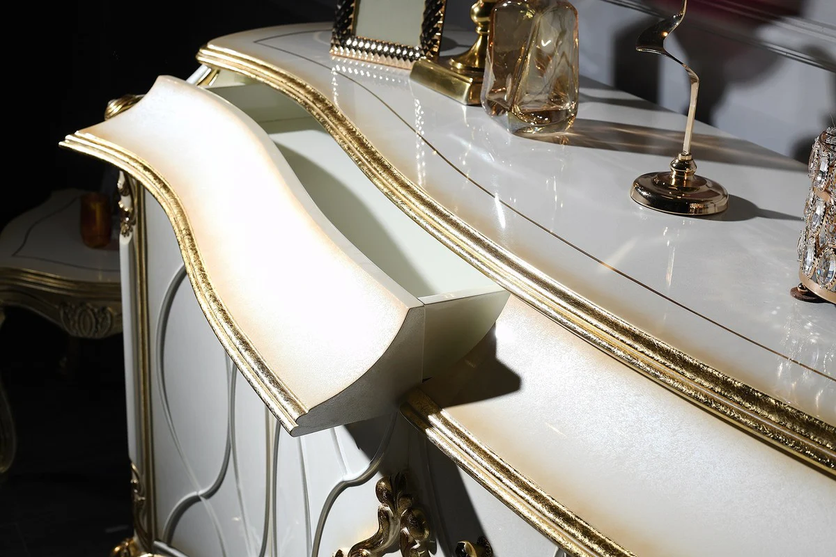 Casa Padrino conjunto de sala de estar barroco de lujo blanco / oro antiguo - C¨®moda Barroca Suntuosa y 3 Espejos de Pared - Muebles Barrocos