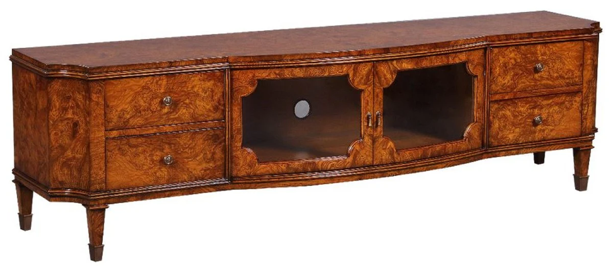 Casa Padrino Gabinete de TV Art Nouveau de Lujo Marr¨®n 198 x 49 x A. 55 cm - Gabinete de TV de Madera Maciza Noble - Gabinete de Sala de Estar - Muebles de Sala Barrocos y Art Nouveau