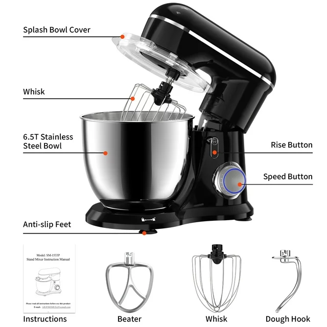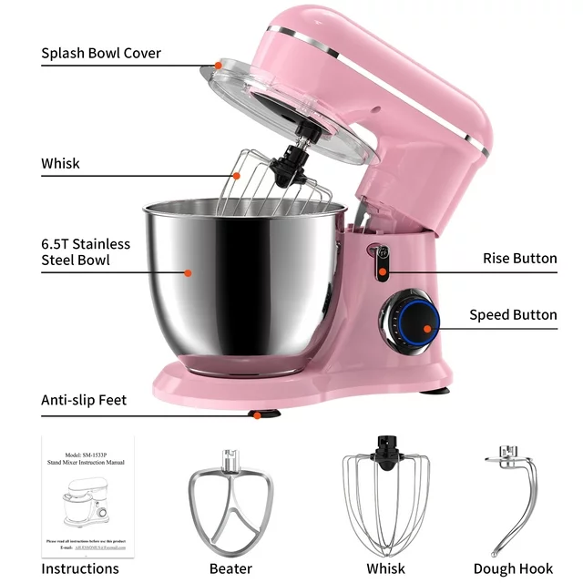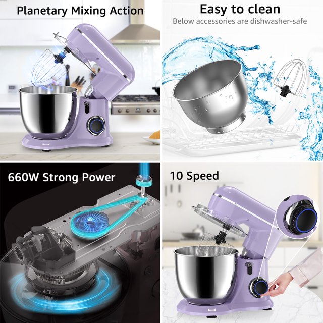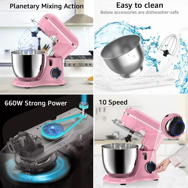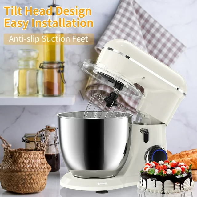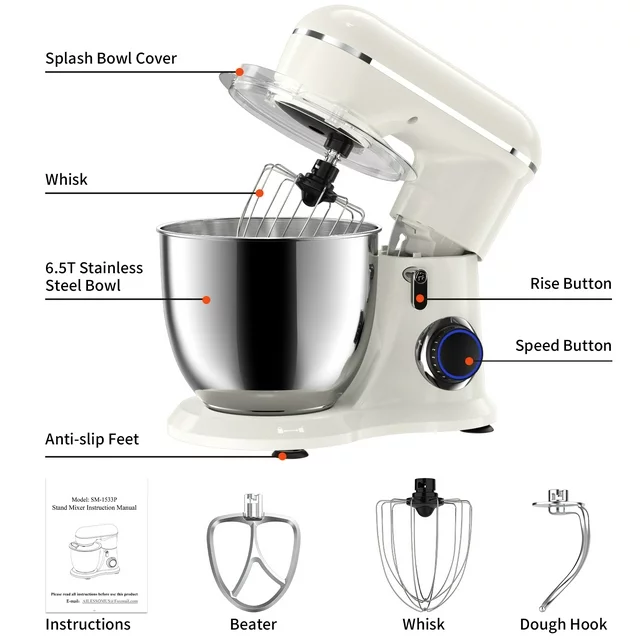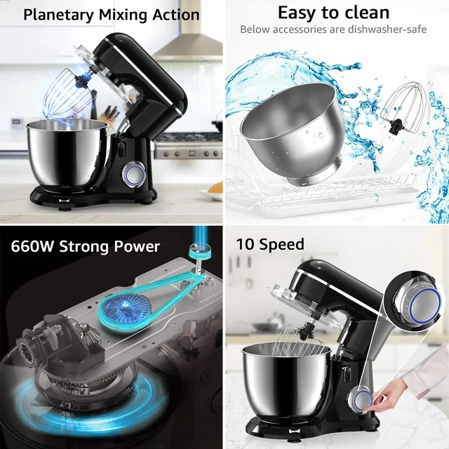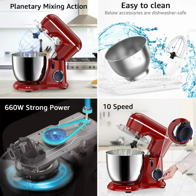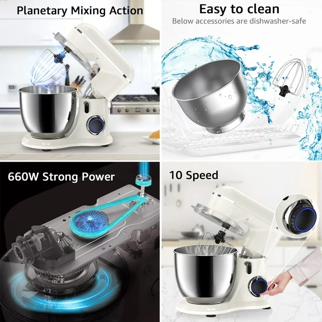 Samsaimo Stand Mixer,6.5-QT 660W 10-Speed Tilt-Head Food Mixer, Kitchen Electric Mixer with Bowl, Dough Hook, Beater, Whisk for Most Home Cooks