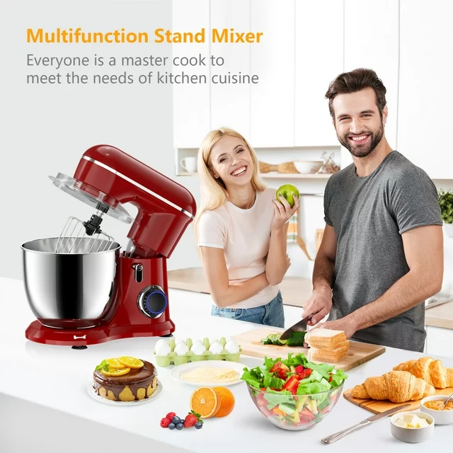HKEEY Stand Mixer��5.5 Quart Stainless Steel Bowl, Food Mixer, Kitchen Electric Mixer with Dough Hook, Wire Whip & Beater