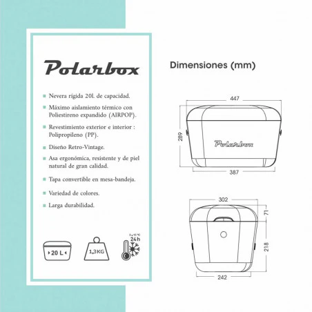 Polarbox Classic 20L verde agua – Nevera portátil retro vintage