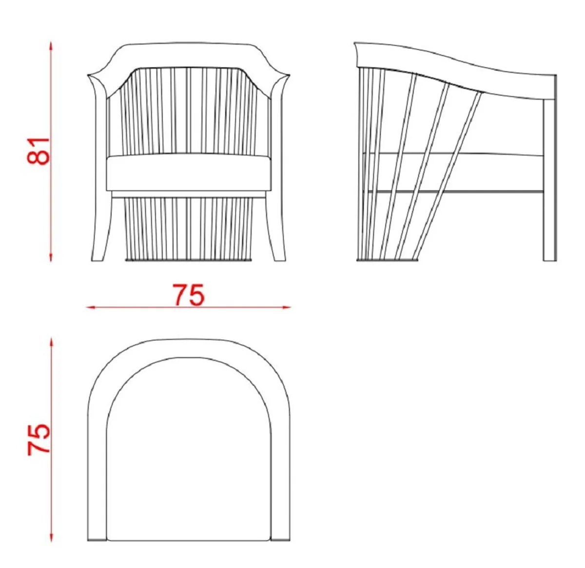Casa Padrino sill¨®n de lujo negro / oro 75 x 75 x A. 81 cm - Sill¨®n de sal¨®n - Sill¨®n de hotel - Muebles de sal¨®n - Muebles de hotel - Muebles de lujo