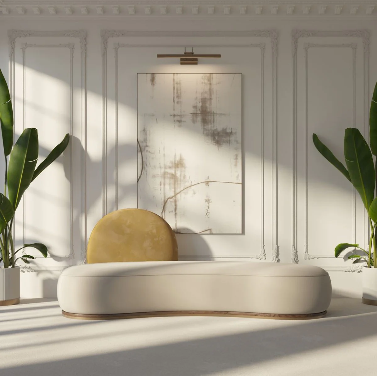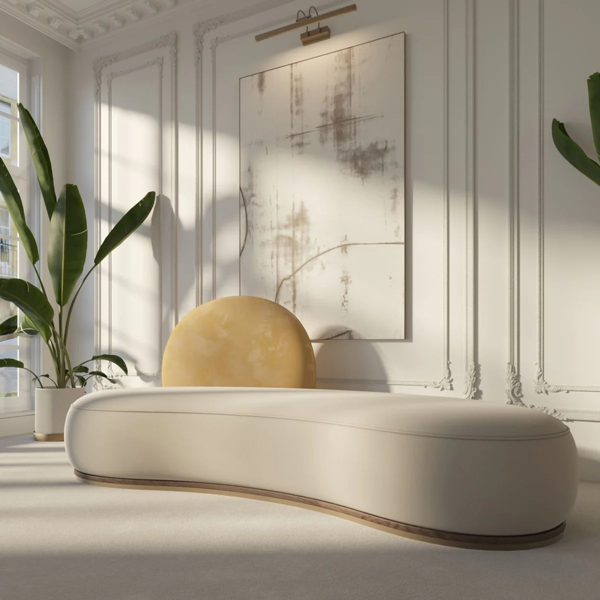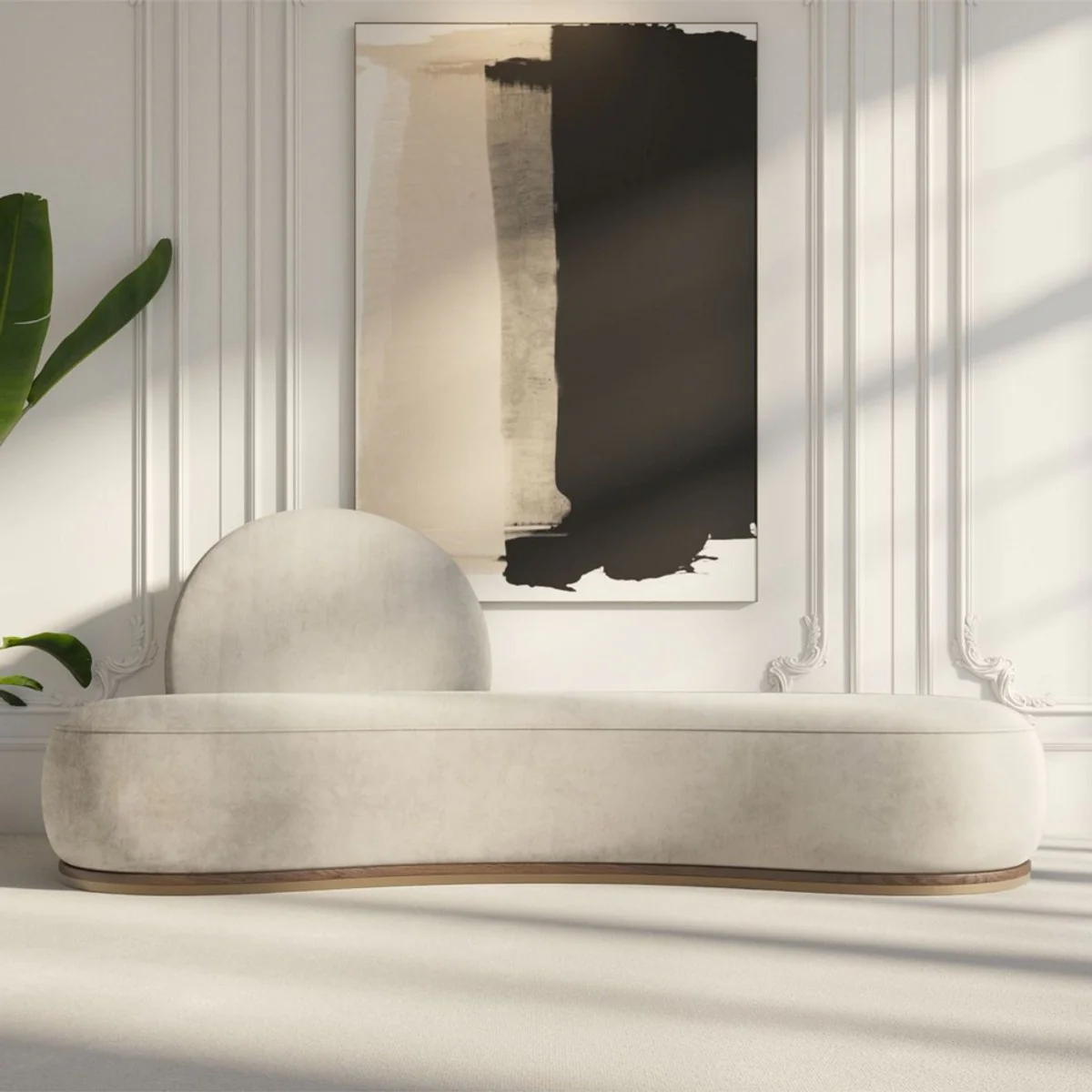Casa Padrino sof¨¢ de lujo crema / marr¨®n 260 x 100 x A. 72 cm - Sof¨¢ de sal¨®n curvo - Sof¨¢ de hotel - Muebles de sal¨®n - Muebles de hotel - Muebles de lujo