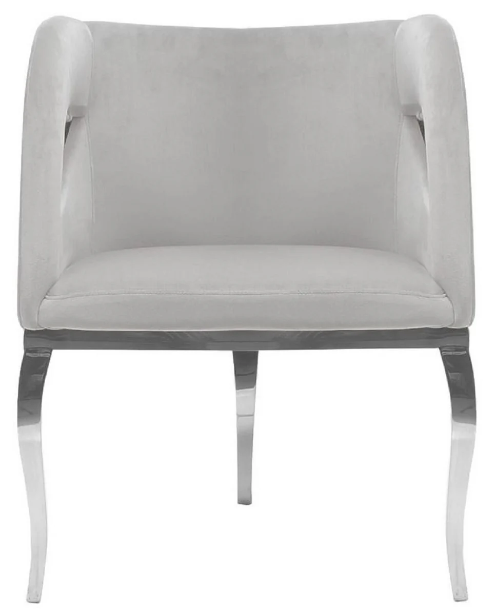 Casa Padrino sill¨®n de terciopelo de lujo gris / plata 78 x 55 x A. 59 cm - Sill¨®n de sal¨®n - Muebles de sal¨®n - Muebles de hotel - Muebles de lujo - Interiores de sal¨®n - Interiores de lujo