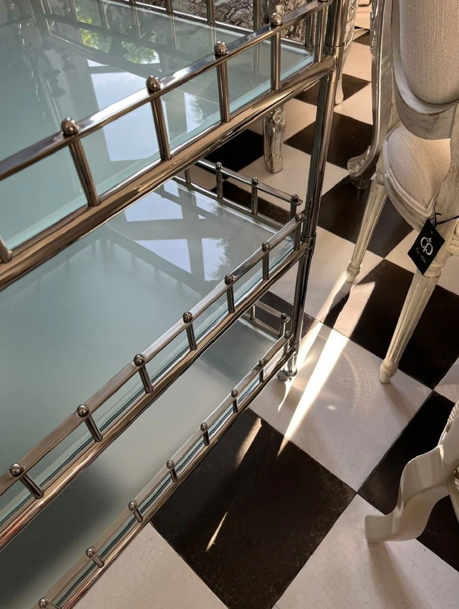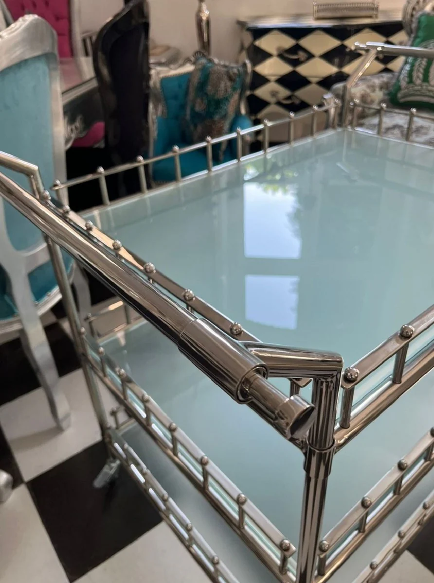 Casa Padrino carrito de lujo plata 102 x 71,5 x A. 90,5 cm - Carro de servicio de acero inoxidable con placas de vidrio - Carrito de restaurante de hotel - Accesorios hoteles y restaurantes
