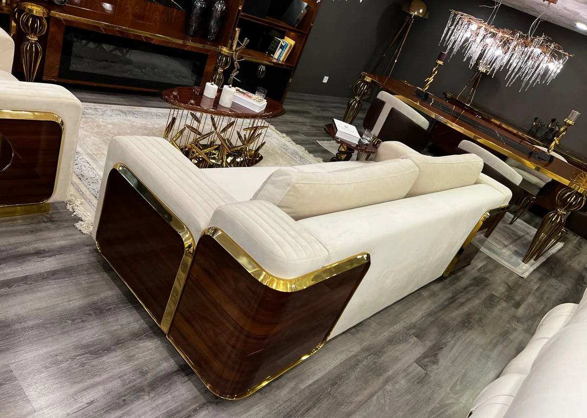 Casa Padrino sof¨¢ de lujo crema / marr¨®n / oro 247 x 100 x A. 70 cm - Sof¨¢ de sal¨®n - Sof¨¢ de hotel - Muebles de sal¨®n - Muebles de hotel - Muebles de lujo - Interiores de lujo