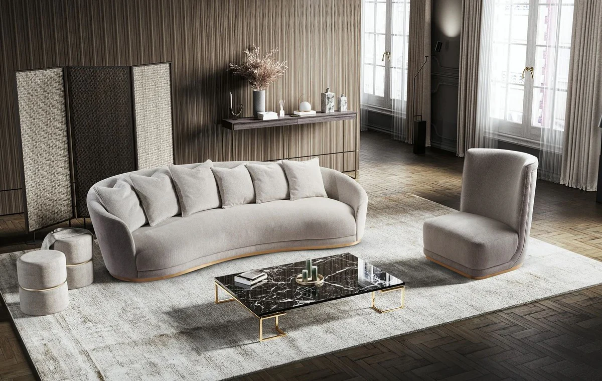 Casa Padrino sof¨¢ de lujo gris claro / lat¨®n 308 x 110 x A. 90 cm - Sof¨¢ de sal¨®n curvo - Sof¨¢ de hotel - Muebles de sal¨®n - Muebles de hotel - Muebles de lujo - Interiores de lujo