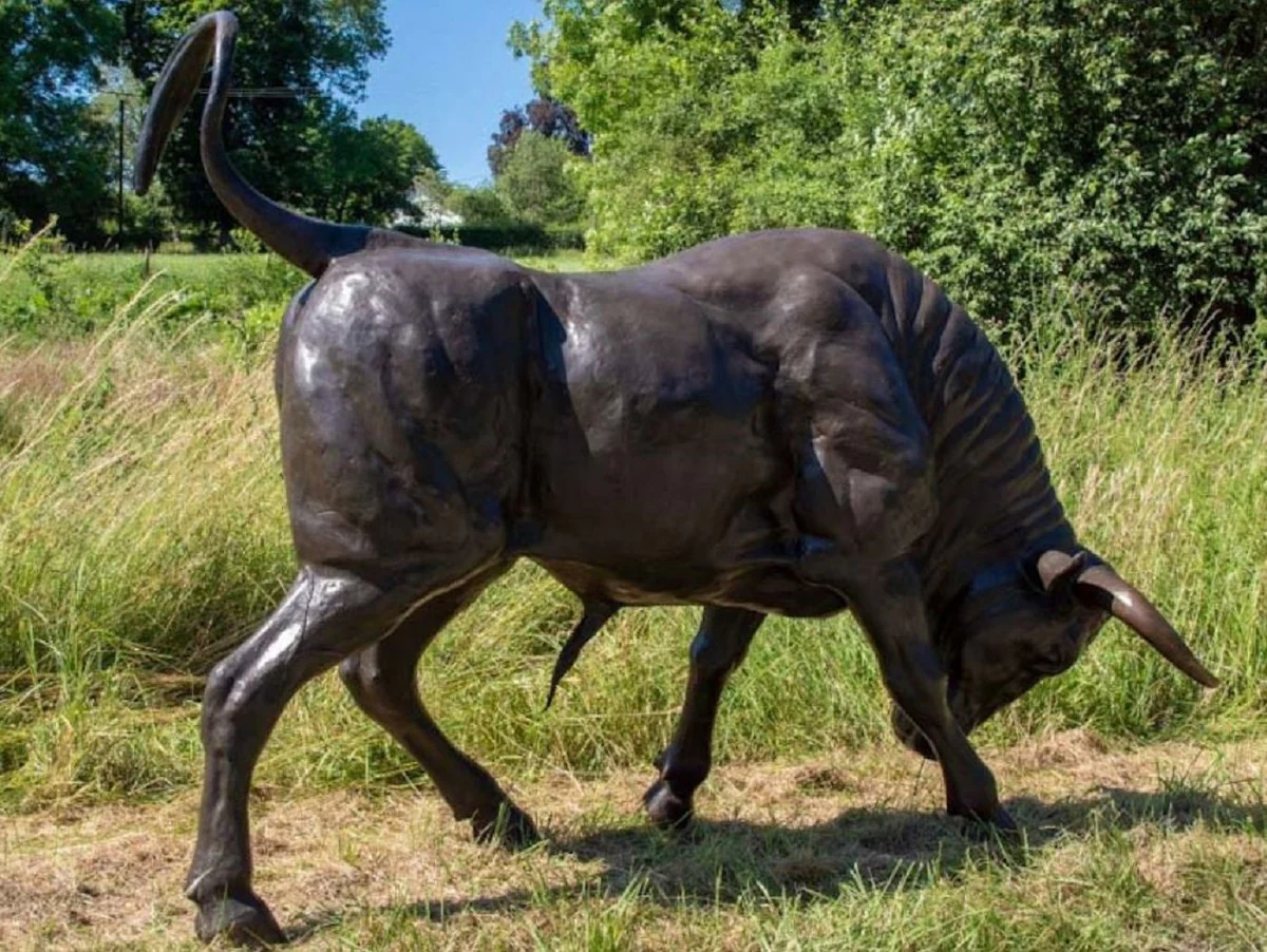 Casa Padrino escultura decorativa de bronce de lujo toro 230 x 58 x A. 142 cm - Enorme escultura de bronce - Figura animal tamaño natural - Figura de toro de bronce XXL - Escultura de jardín XXL