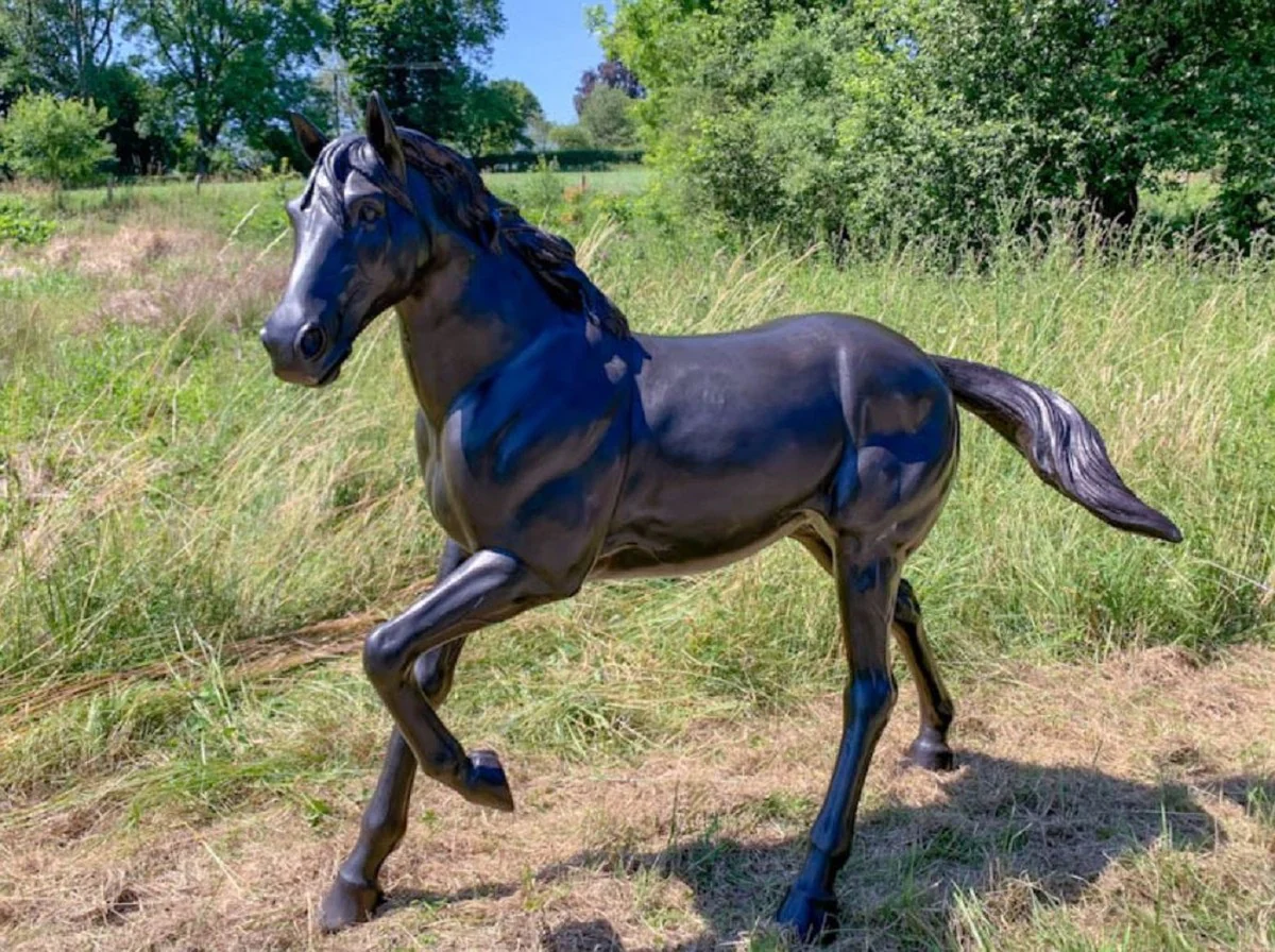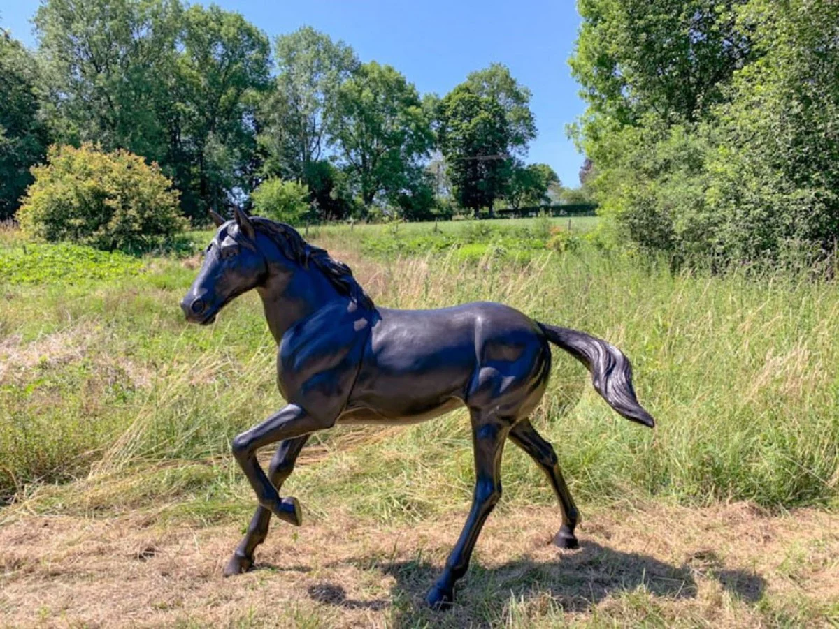 Casa Padrino escultura decorativa de bronce de lujo caballo 188 x 64 x A. 157 cm - Enorme escultura de bronce - Figura animal tamaño natural - Figura de bronce XXL - Escultura de jardín XXL