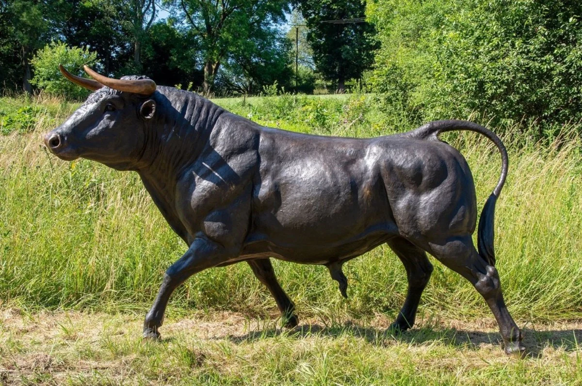 Casa Padrino escultura decorativa de bronce de lujo toro 295 x 86 x A. 160 cm - Enorme escultura de bronce - Figura animal tamaño natural - Figura de toro de bronce XXL - Escultura de jardín XXL
