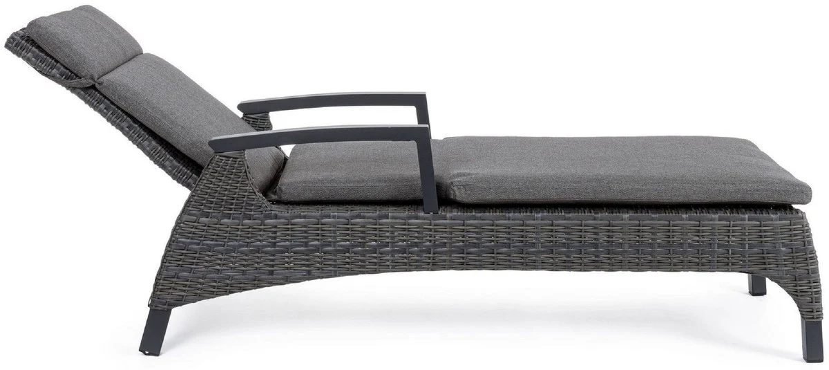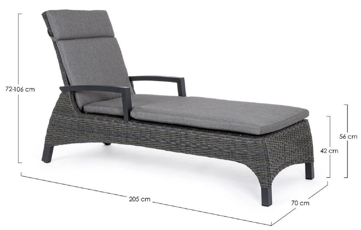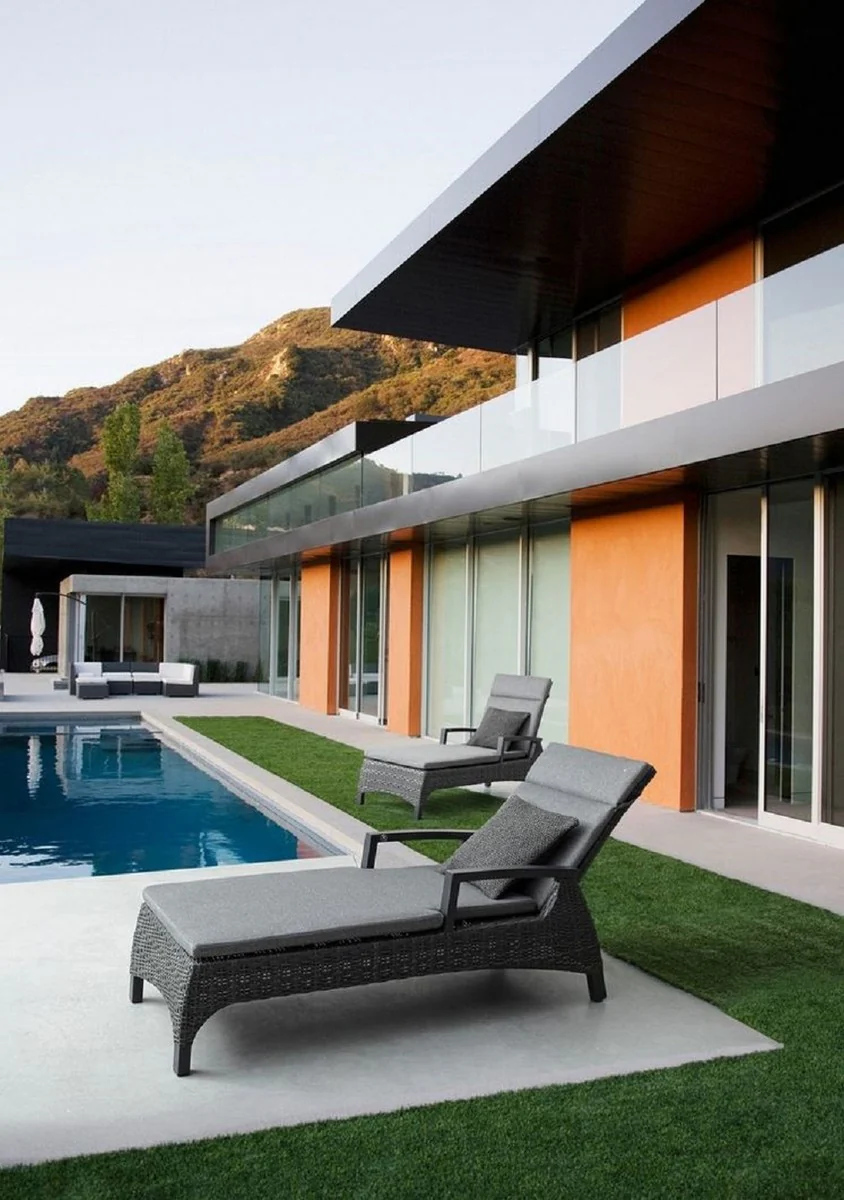 Casa Padrino tumbona de jardín de lujo gris / antracita 205 x 70 x A. 72-106 cm - Moderna tumbona resistente a la intemperie con respaldo regulable y reposabrazos - Muebles de piscina de jardín