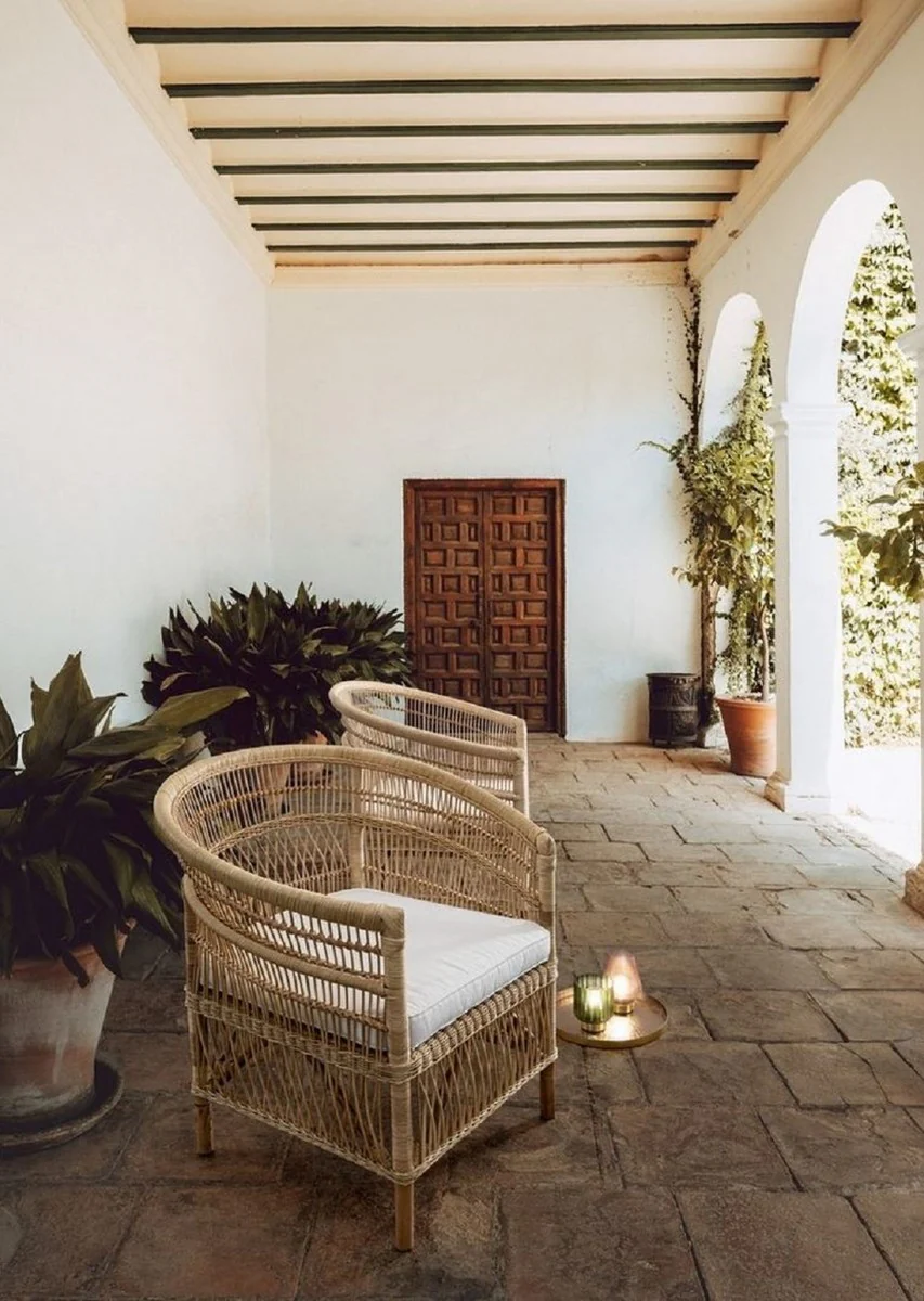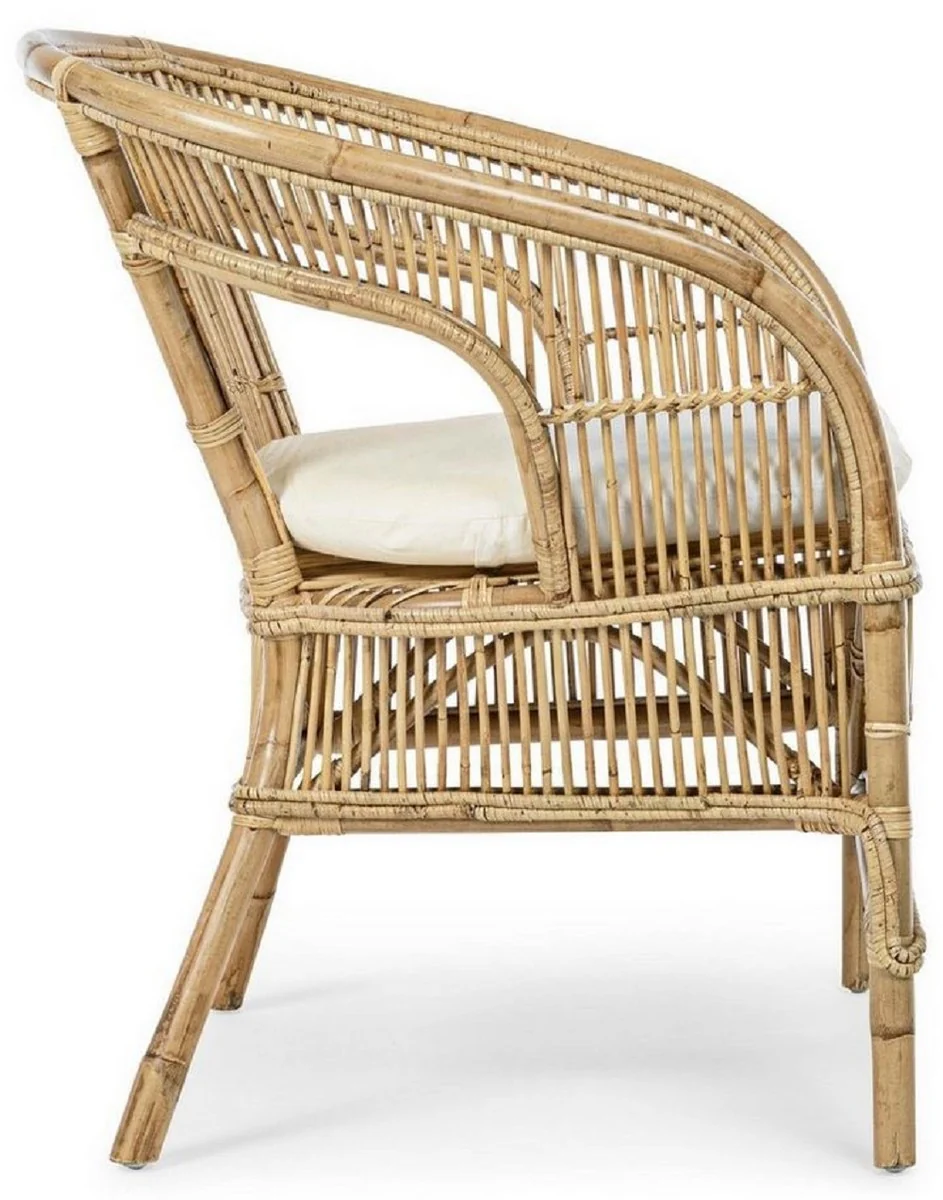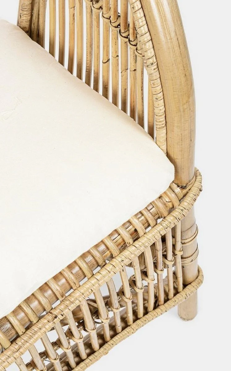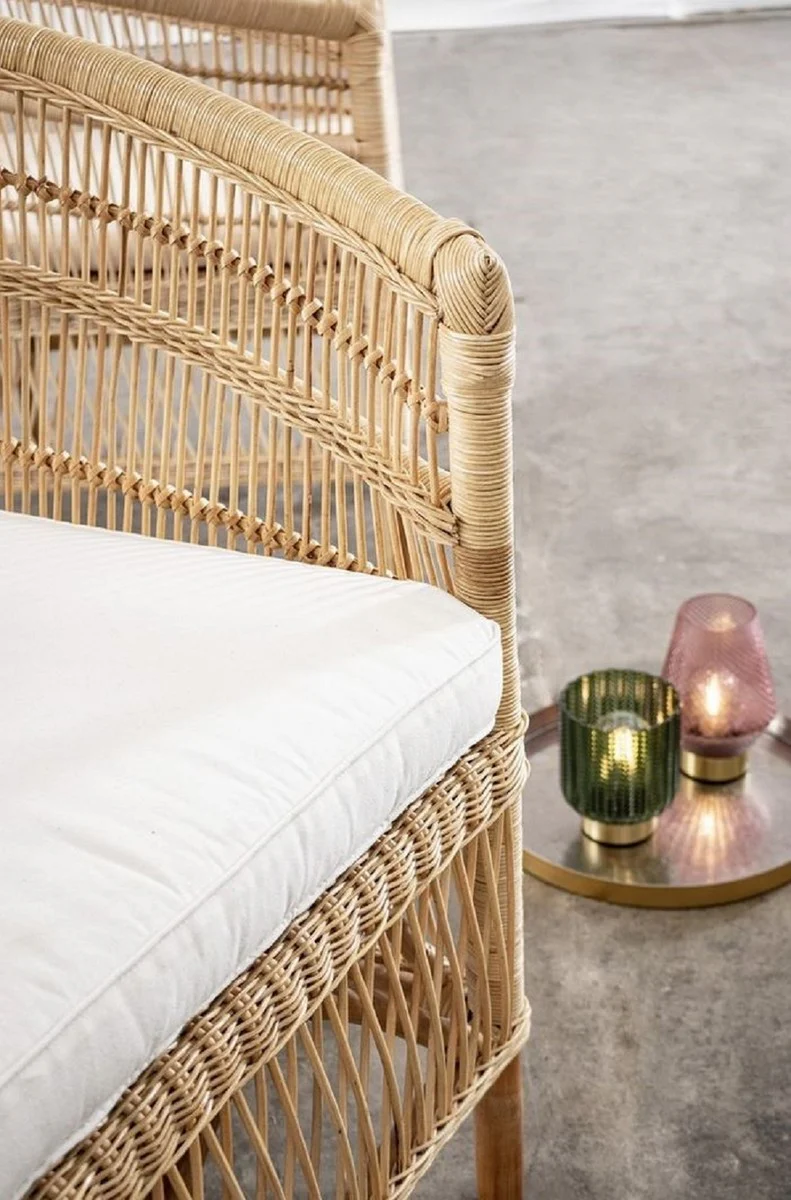 Casa Padrino sillón de jardín de lujo natural / blanco 79 x 72 x A. 86 cm - Sillón de jardín y terraza en ratán con cojín de asiento - Muebles de Jardín y Terraza - Calidad de Lujo