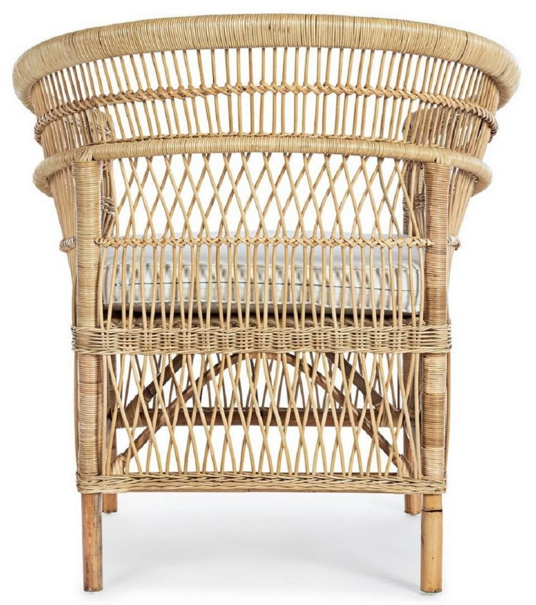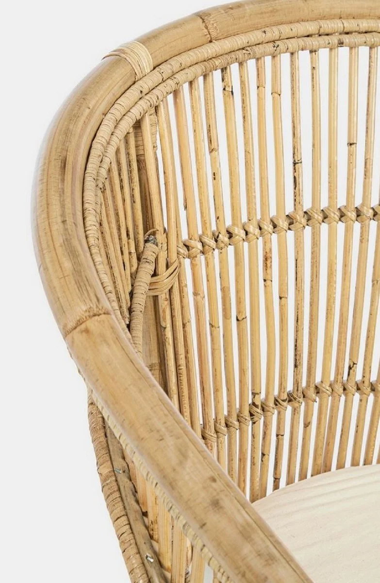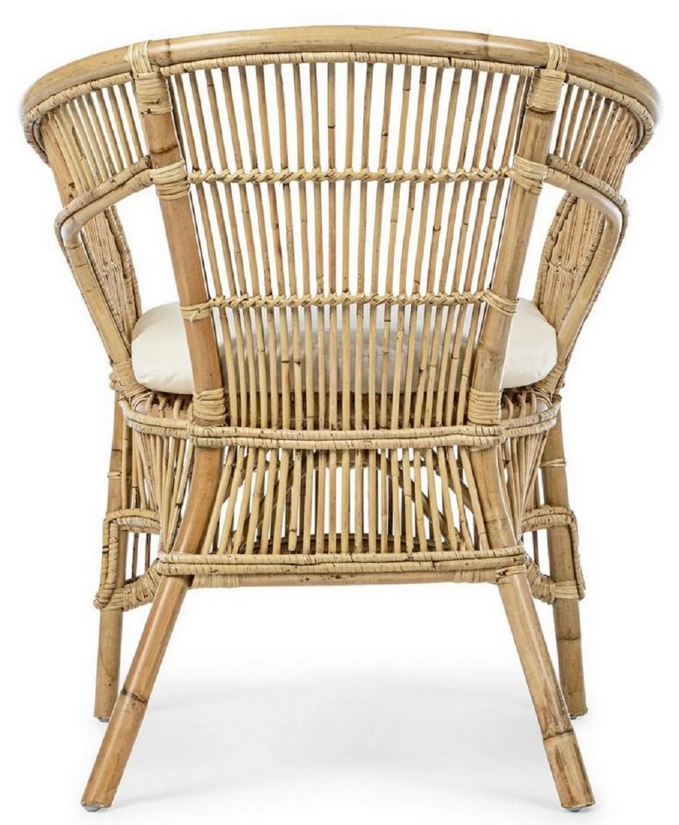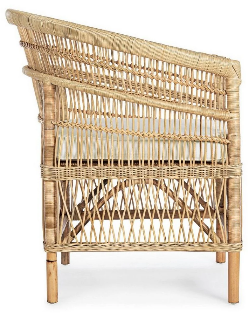 Casa Padrino sillón de jardín de lujo natural / blanco 79 x 72 x A. 86 cm - Sillón de jardín y terraza en ratán con cojín de asiento - Muebles de Jardín y Terraza - Calidad de Lujo