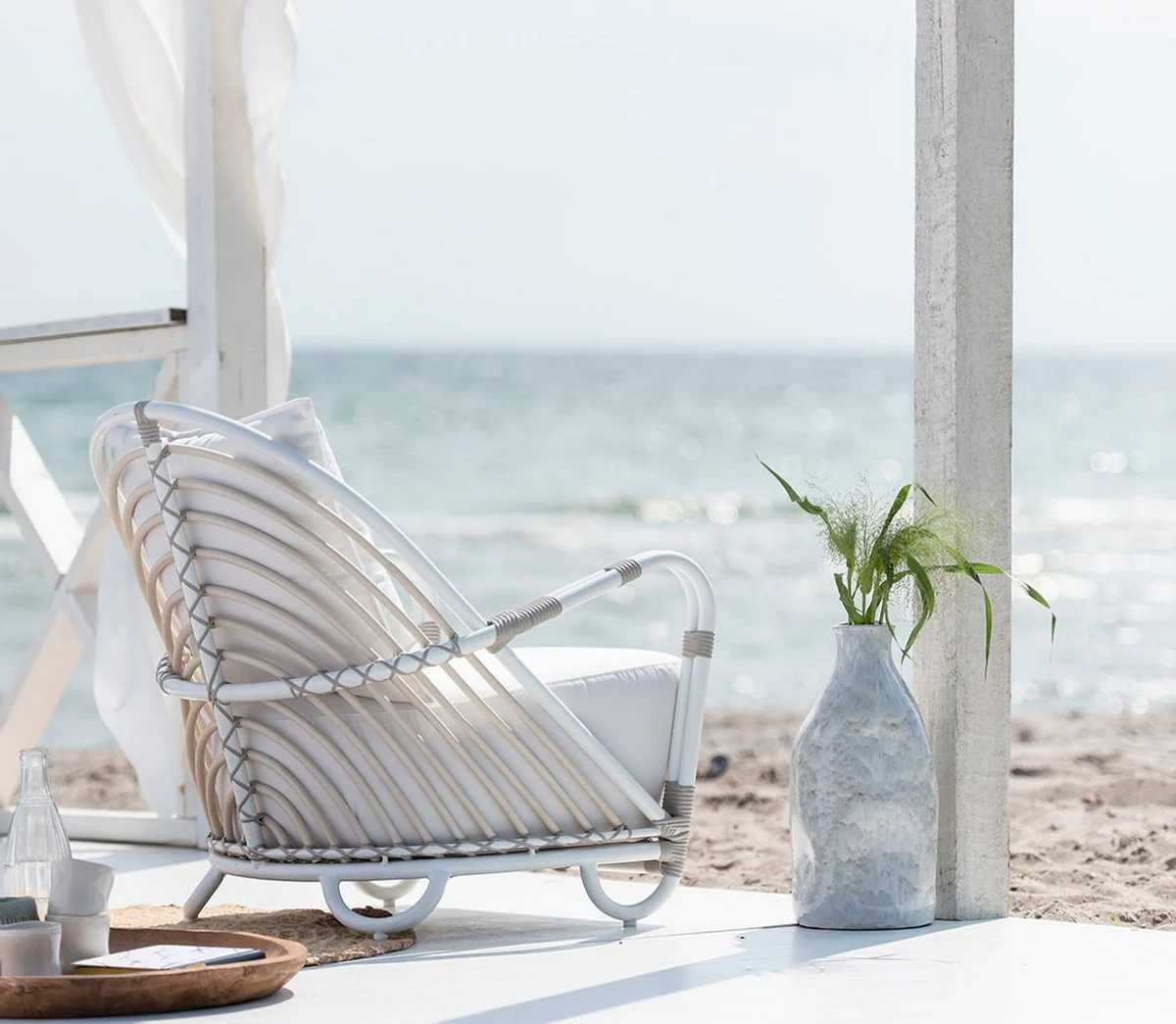 Casa Padrino sillón de jardín de lujo natural / blanco 66 x 80 x A. 74 cm - Sillón de jardín y terraza resistente a la intemperie - Muebles de Jardín y Terraza - Calidad de Lujo