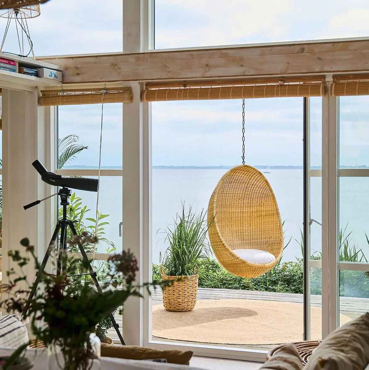 Casa Padrino sillón colgante de exterior de lujo natural / gris claro 85 x 72 x A. 120 cm - Sillón colgante de jardín y terraza resistente a la intemperie en forma de huevo - Muebles de Jardín