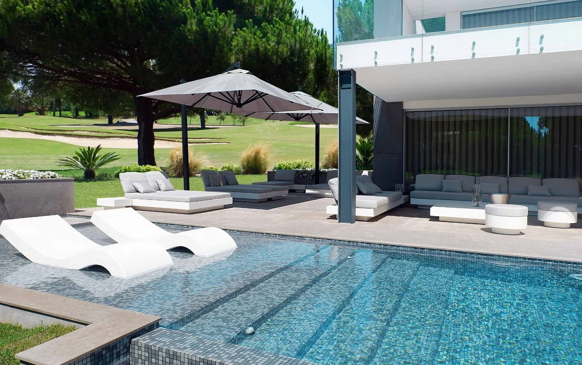 Casa Padrino tumbona de jardín doble de lujo gris / blanco mate 200 x 175 x A. 60 cm - Tumbona moderna resistente a la intemperie - Tumbona de piscina - Muebles de piscina de hotel de jardín