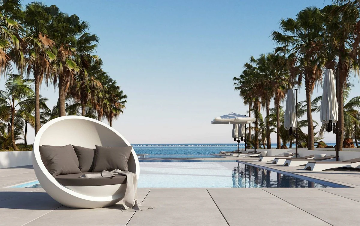 Casa Padrino isla tumbona de diseño blanco mate / gris oscuro 140 x 130 x A. 122 cm - Isla de sol resistente a la intemperie - Muebles de hotel de terrazas de jardín - Calidad de Lujo