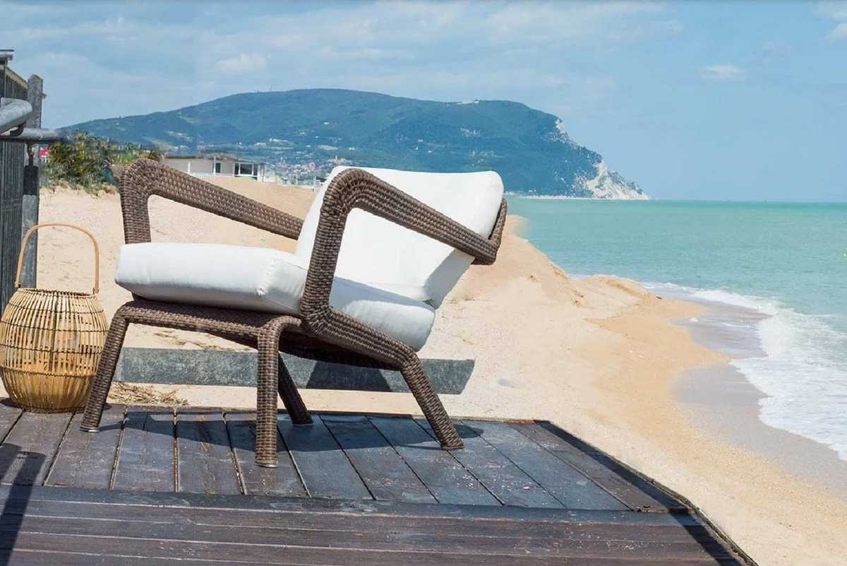 Casa Padrino sillón de jardín de lujo marrón / blanco 100 x 86 x A. 70 cm - Sillón resistente a la intemperie tejido a mano - Muebles sillón de piscina de hotel de terraza de jardín