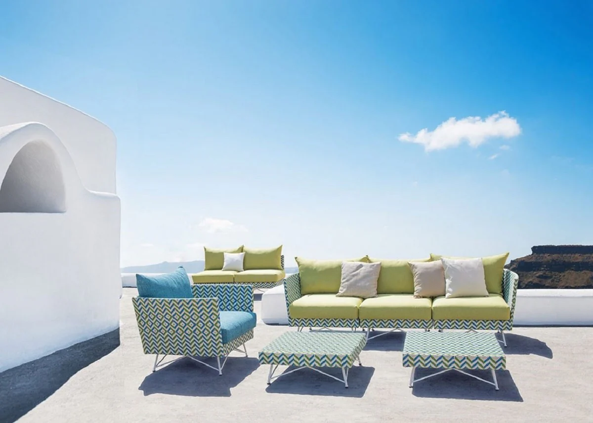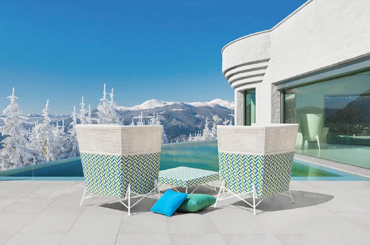 Casa Padrino sillón de jardín de lujo blanco / azul / verde 98 x 85 x A. 104 cm - Sillón de respaldo alto resistente a la intemperie tejido a mano - Muebles de Jardín y Terraza