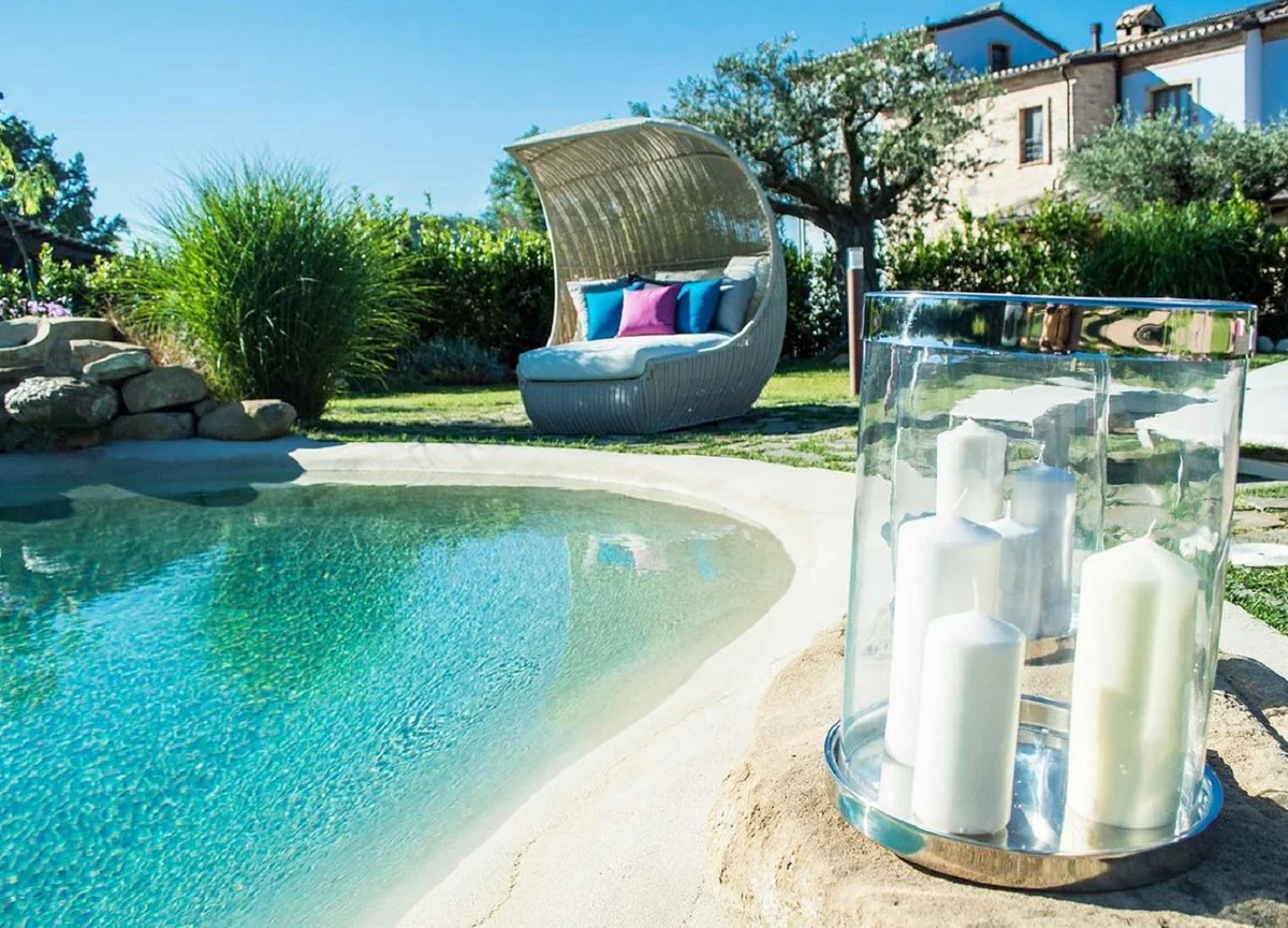 Casa Padrino tumbona mecedora de lujo blanco / lila 230 x 75 x A. 70 cm - Tumbona de jardín resistente a la intemperie tejida a mano - Tumbona de piscina moderna - Muebles de Jardín de Hotel