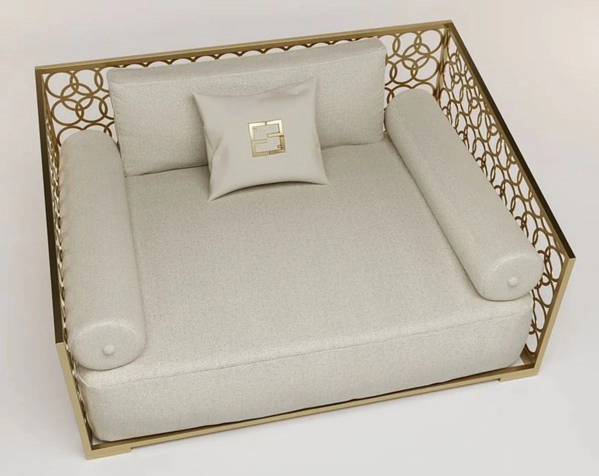 Casa Padrino sofá de lujo de 2 plazas marfil / oro champán 250 x 109 cm - Sofá hecho a mano con cojines - Sofá de sala de estar - Sofá de jardín - Sofá de terraza - Muebles de hotel - Calidad de Lujo