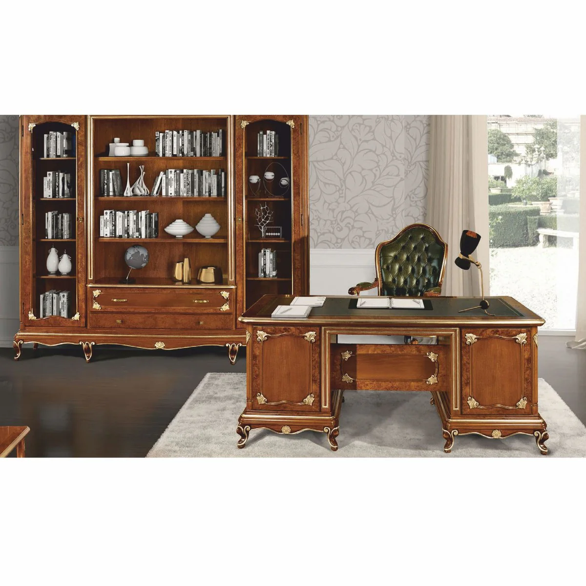 Casa Padrino Silla de Escritorio Barroco Chesterfield de Lujo en Cuero Verde / Marrón / Oro - Hecho en Italia