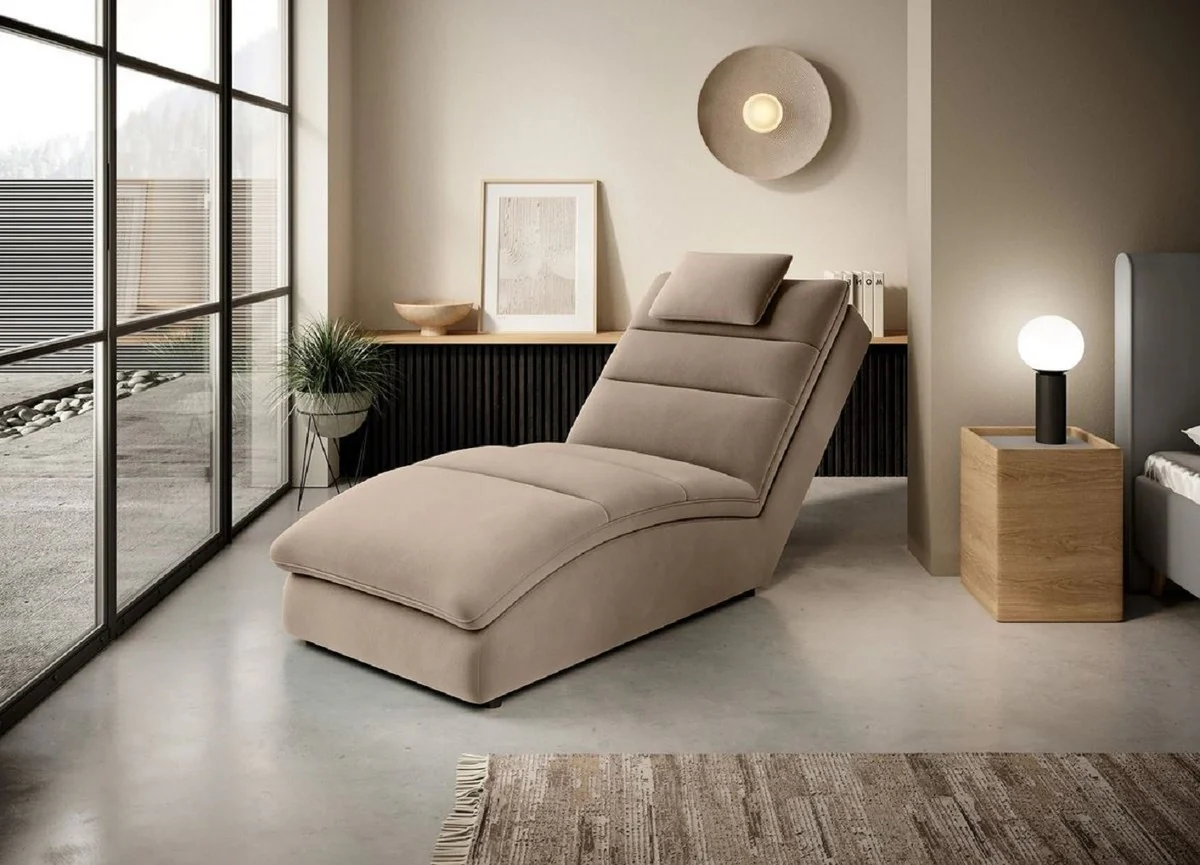 Casa Padrino chaise longue de terciopelo de lujo con coj¨ªn para la cabeza marr¨®n claro 170 cm