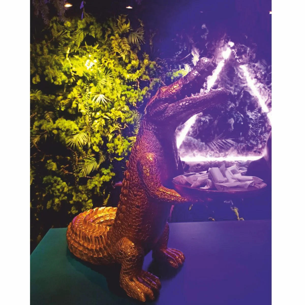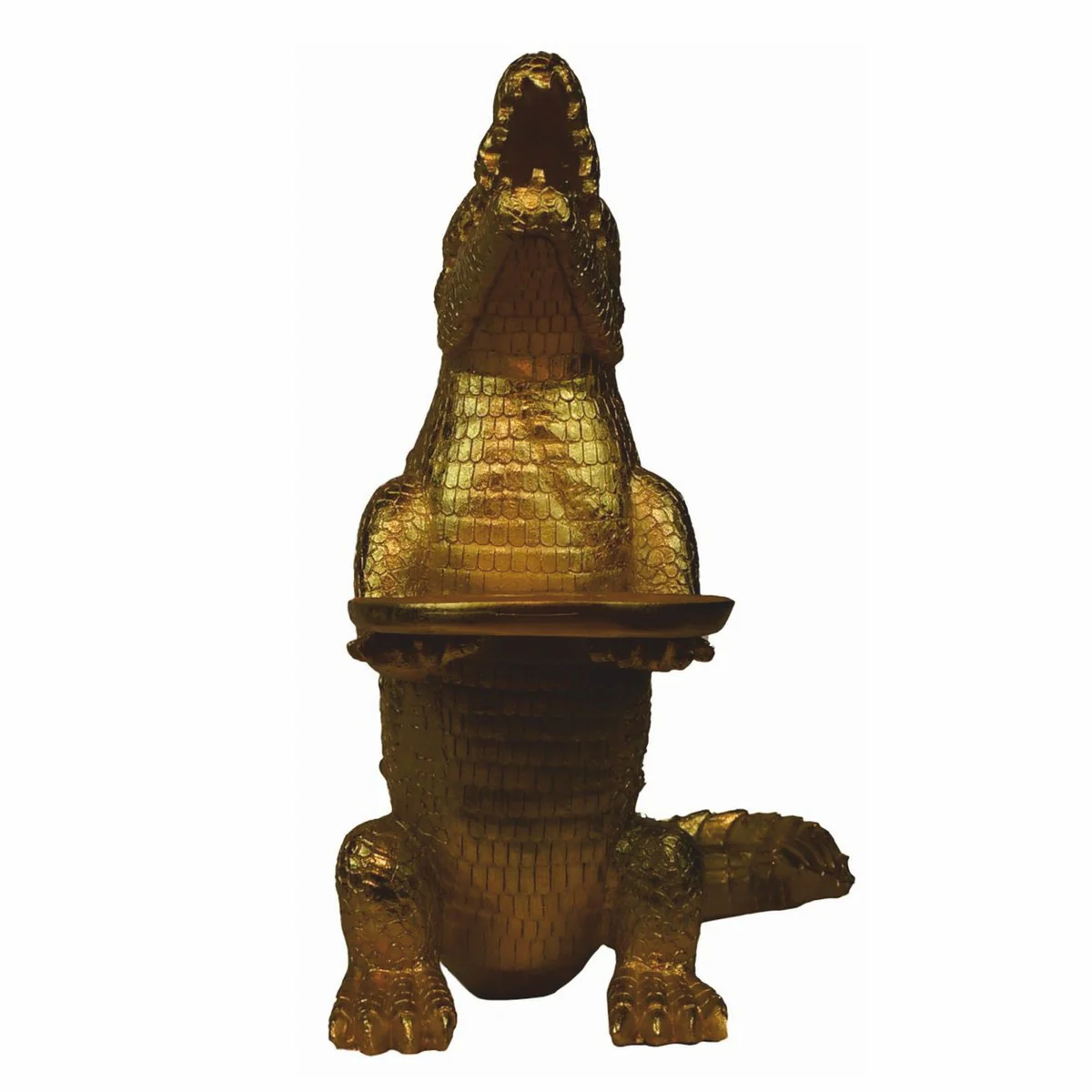 Casa Padrino escultura decorativa de lujo cocodrilo con bandeja oro A. 52 cm - Figura decorativa
