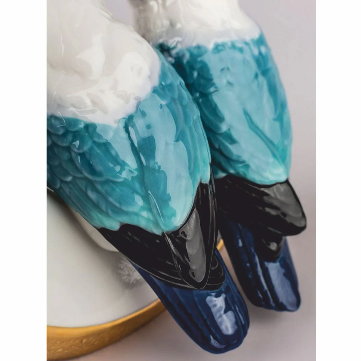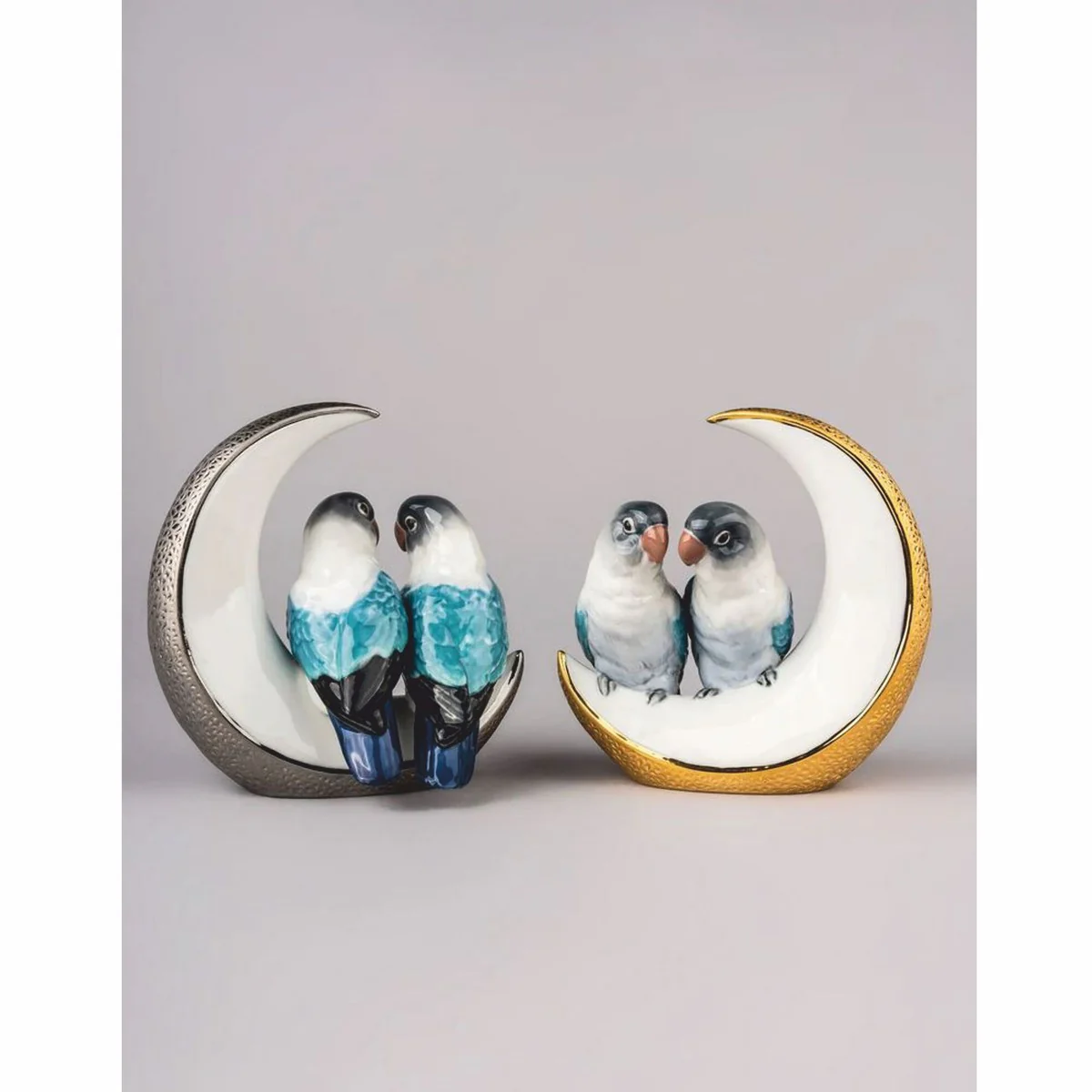 Casa Padrino figura decorativa de porcelana de lujo loros en la luna colorido / blanco / oro 15 x 8 x A. 16 cm