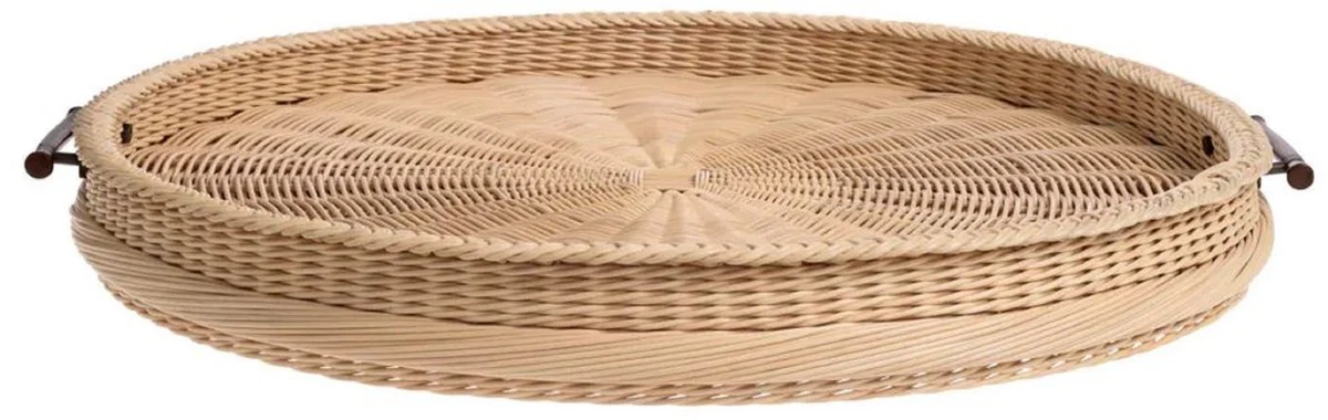 Casa Padrino bandeja de servir de lujo natural / marrón Ø 63 x A. 9 cm - Bandeja redonda de ratán con 2 asas - Accesorios Gastronomía y Restauración - Accesorios de Lujo