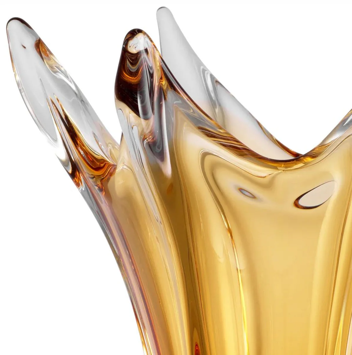 Casa Padrino florero de cristal de lujo amarillo Ø 32 x A. 35 cm - Florero soplado a mano - Florero decorativo - Accesorios decorativos - Jarrones decorativos de cristal - Accesorios de lujo