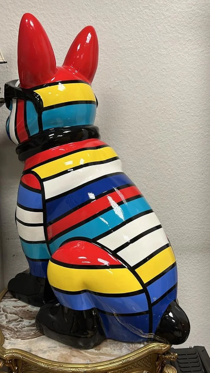 Casa Padrino escultura decorativa XXL de lujo perro bulldog multicolor / negro A. 80 cm - Figura decorativa grande - Figura decorativa XXL