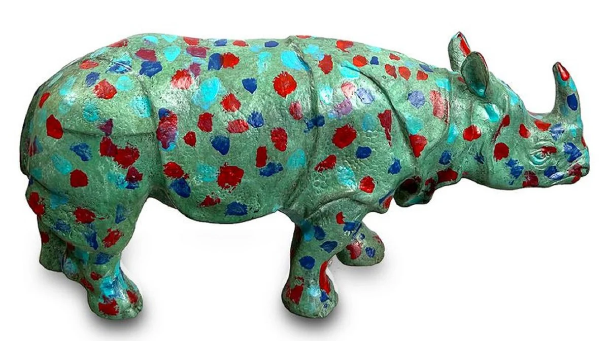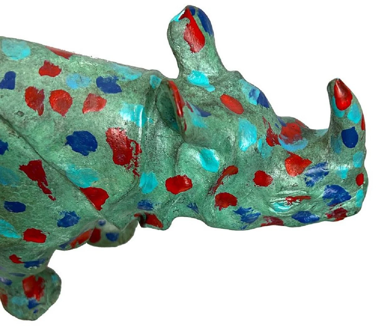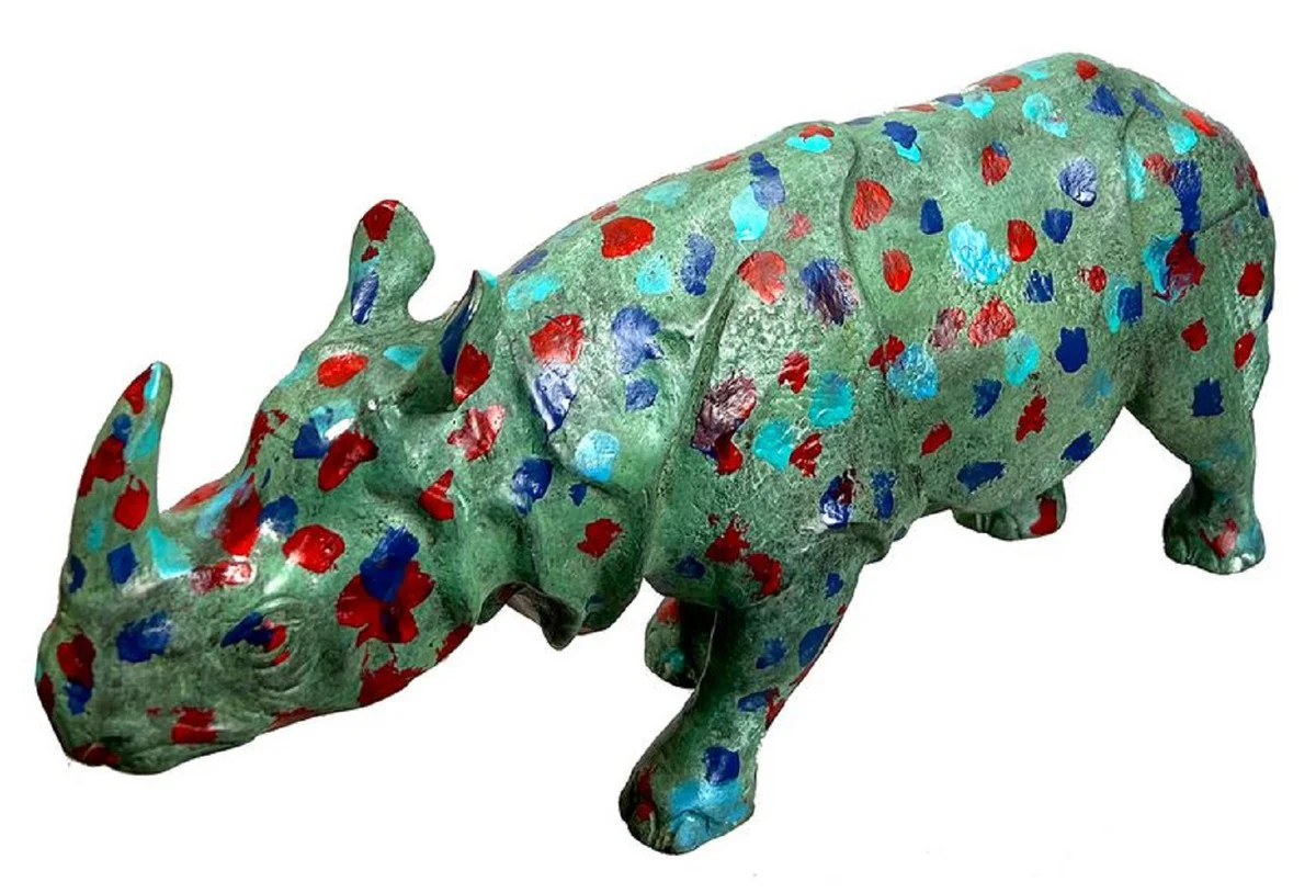 Casa Padrino Escultura Decorativa de Bronce de Diseño de Lujo Rinoceronte Verde / Multicolor 35 x 7 x A. 17 cm - Figura Decorativa de Bronce Hecha a Mano - Calidad de Lujo - Hecho en Italia