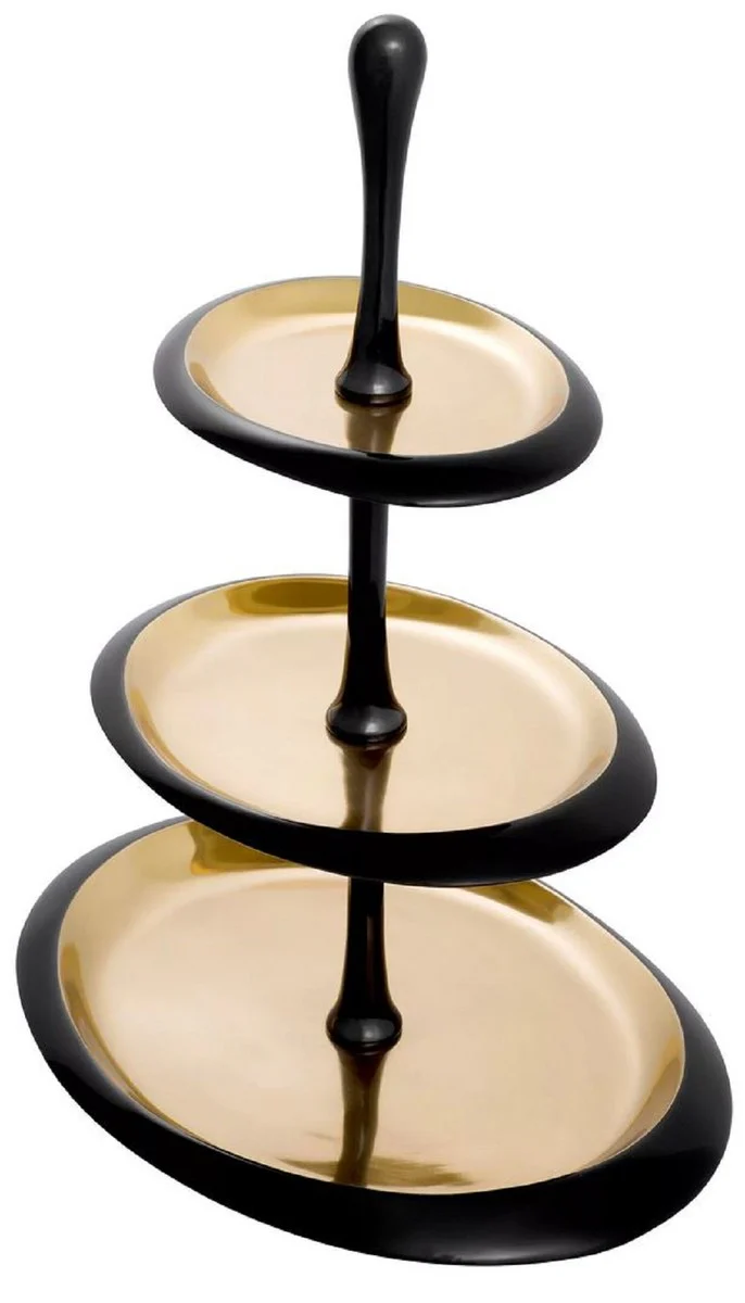 Casa Padrino etagere de lujo negro / oro 35 x 26 x A. 48,5 cm - Soporte para tartas y bizcochos ovalado - Accesorios de gastronomia - Accesorios de restaurante - Accesorios de hotel de lujo