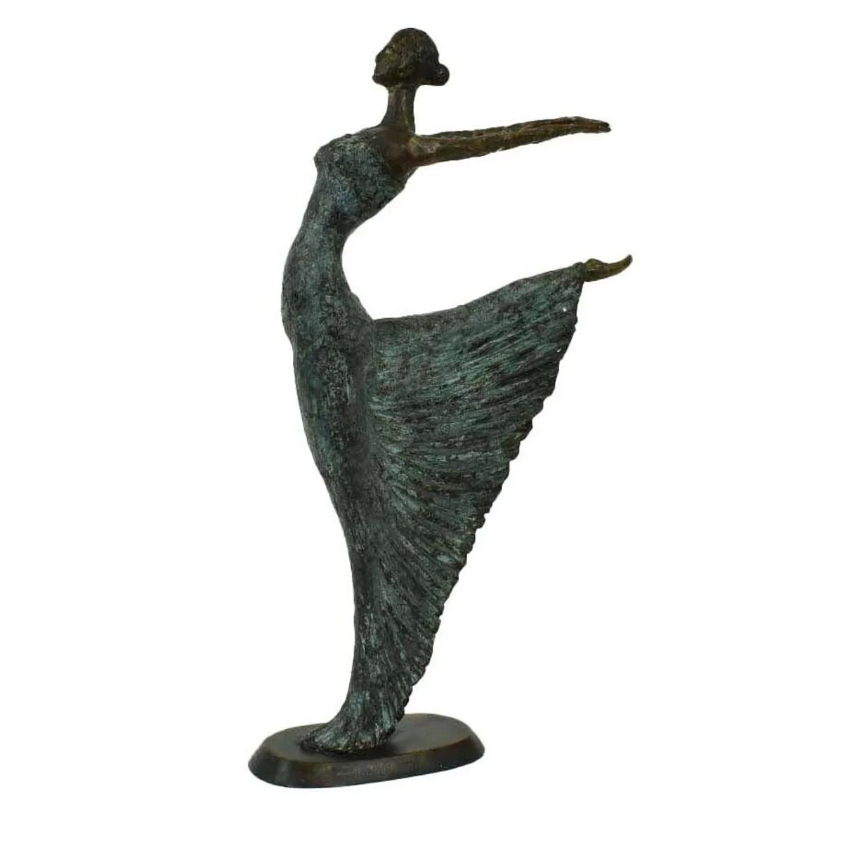 Casa Padrino escultura de bronce Art Nouveau de lujo bailarina bronce verde antiguo sobre base de mármol H 53,5 cm - figura de bronce - figura decorativa - accesorios decorativos