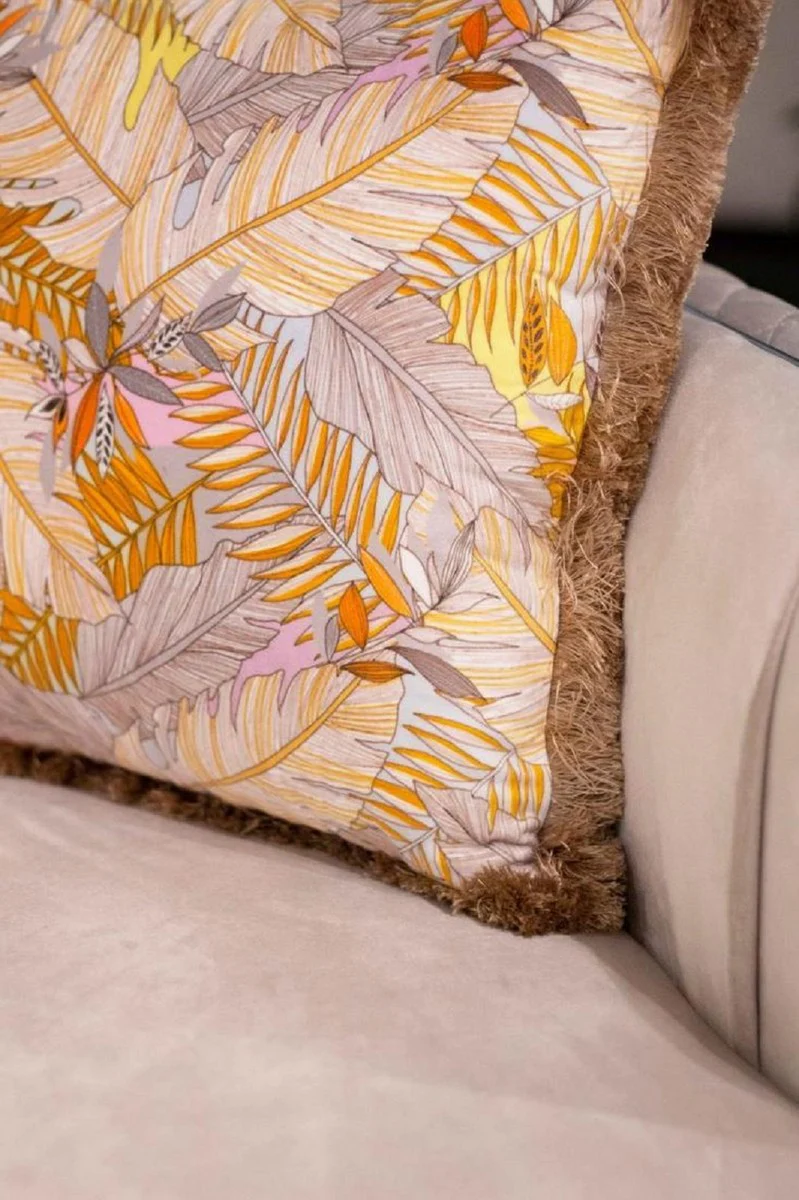 Casa Padrino almohada decorativa de lujo diseño hojas multicolor / marrón 45 x 45 cm - Almohada de terciopelo estampada con flecos - Accesorios Decorativos