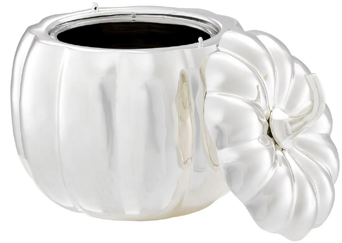 Casa Padrino caja de almacenamiento de lujo en forma de calabaza plata Ø 21,5 x A. 22 cm - Calabaza Decorativa con Tapa