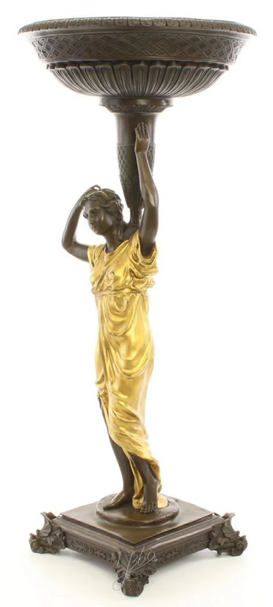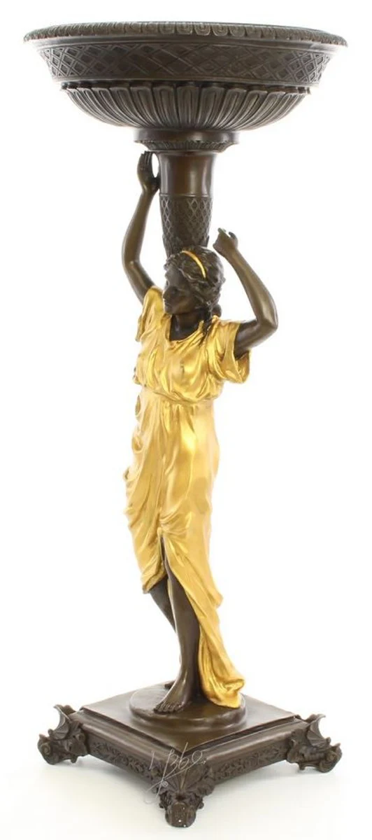 Casa Padrino Art Nouveau Flower Pot Stand Bronce / Oro 33,2 x 33,2 x H. 76,4 cm - Figura de Bronce de Lujo