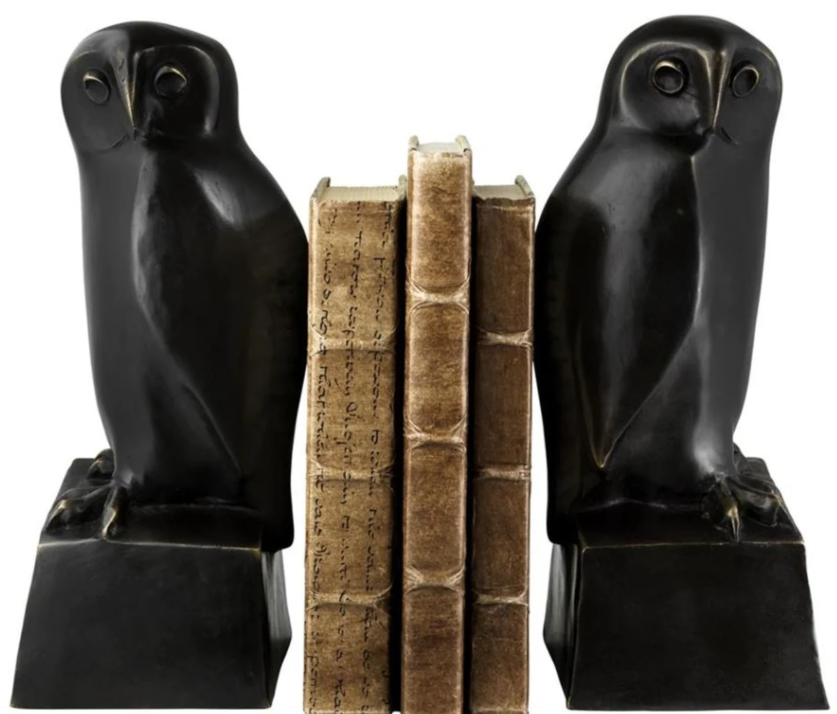 Casa Padrino sujetalibros búho de bronce diseñador de juego de 2 - figuras de bronce de lujo